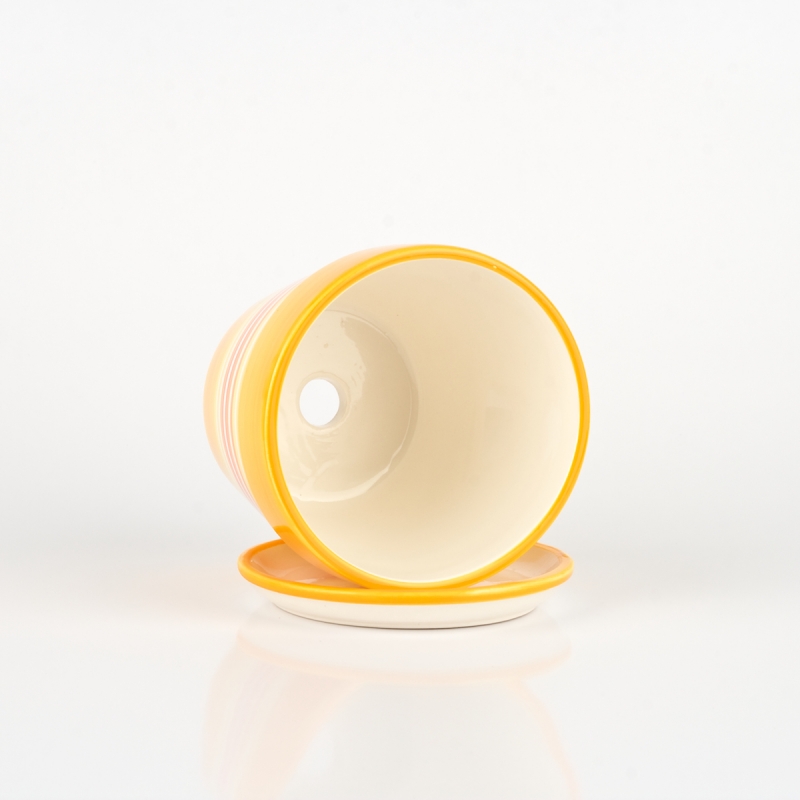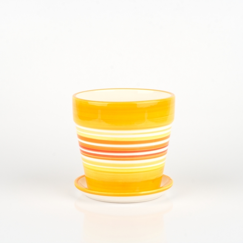 Květináč malý žluto-oranžový je vhodná dekorace do bytu či domácnosti.