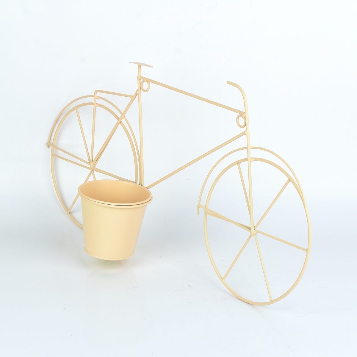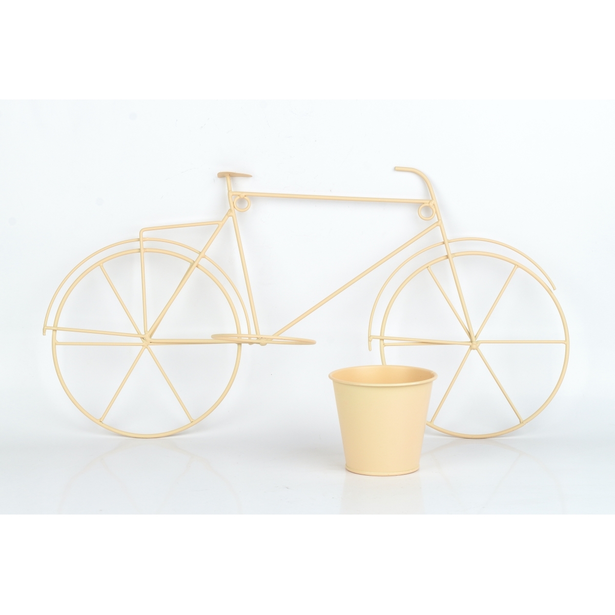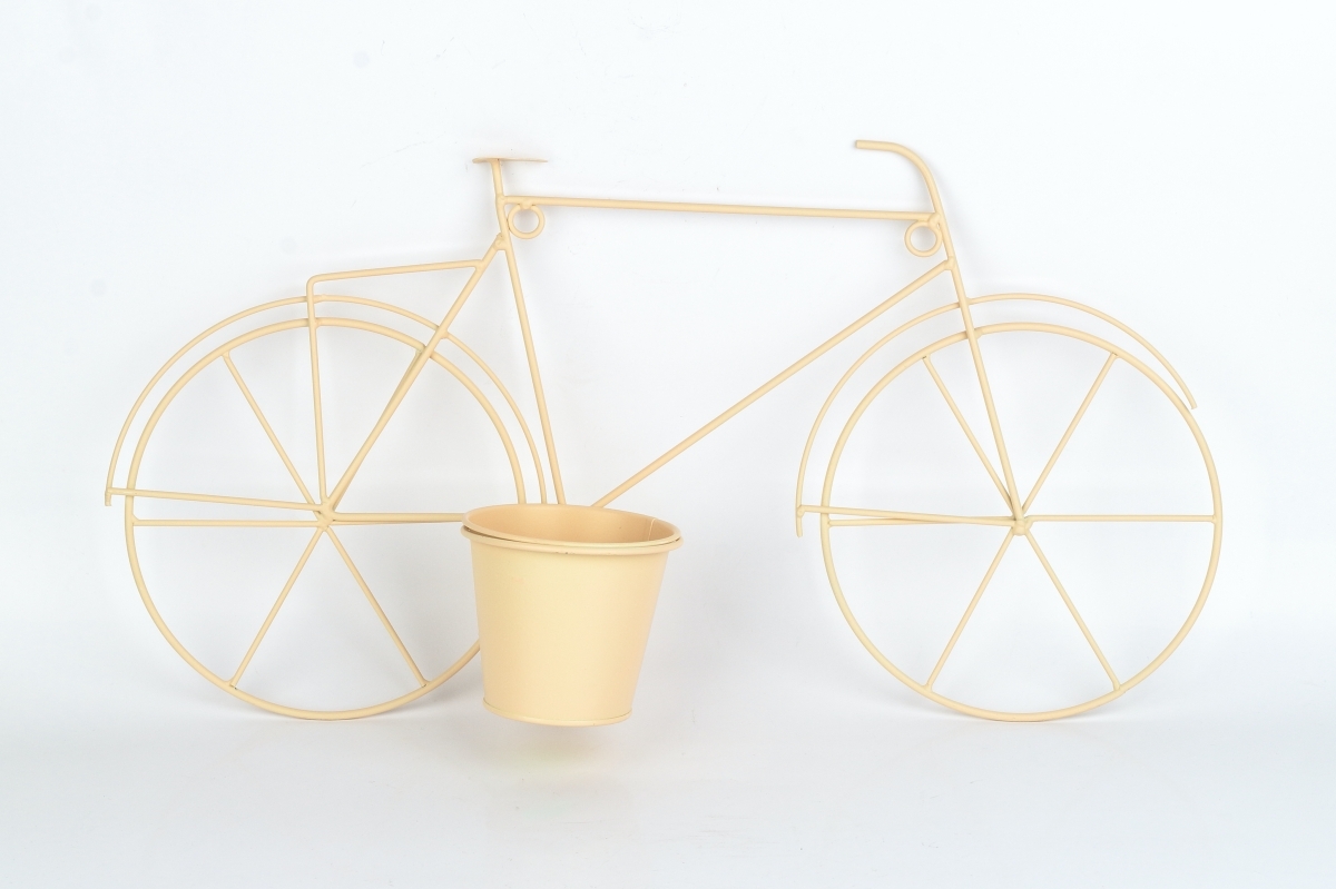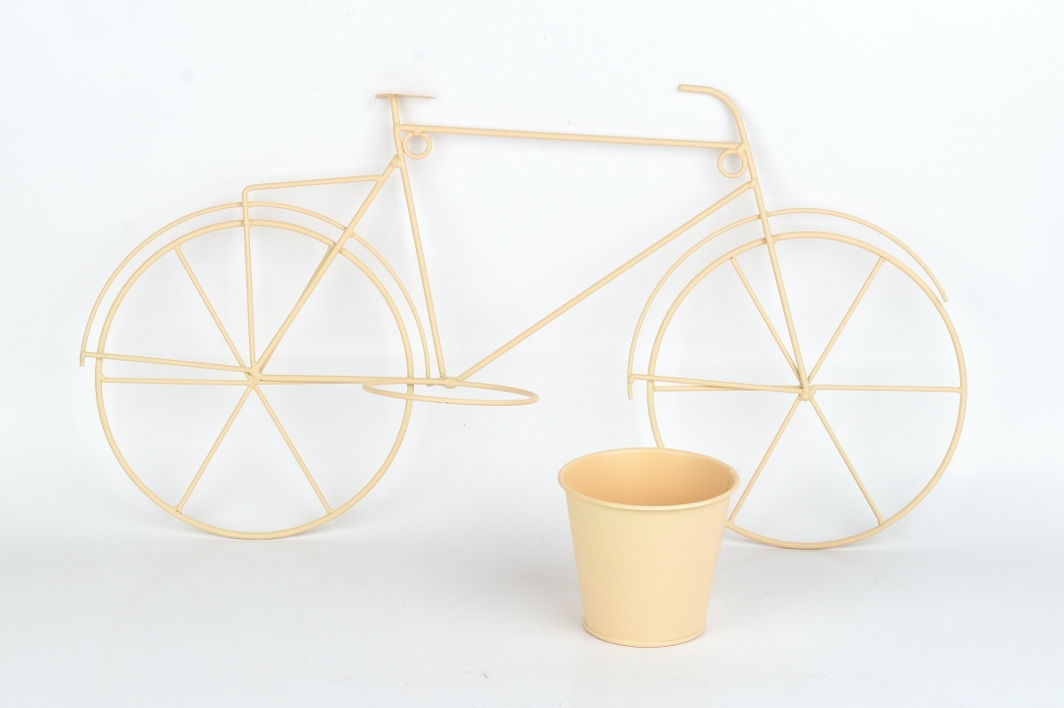 Květináč na zeď v podobě kovového kola v béžové barvě