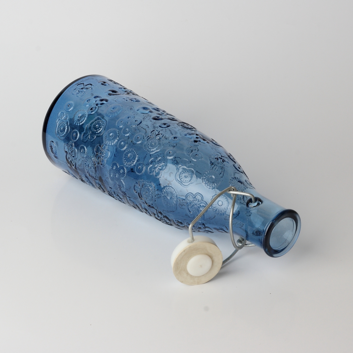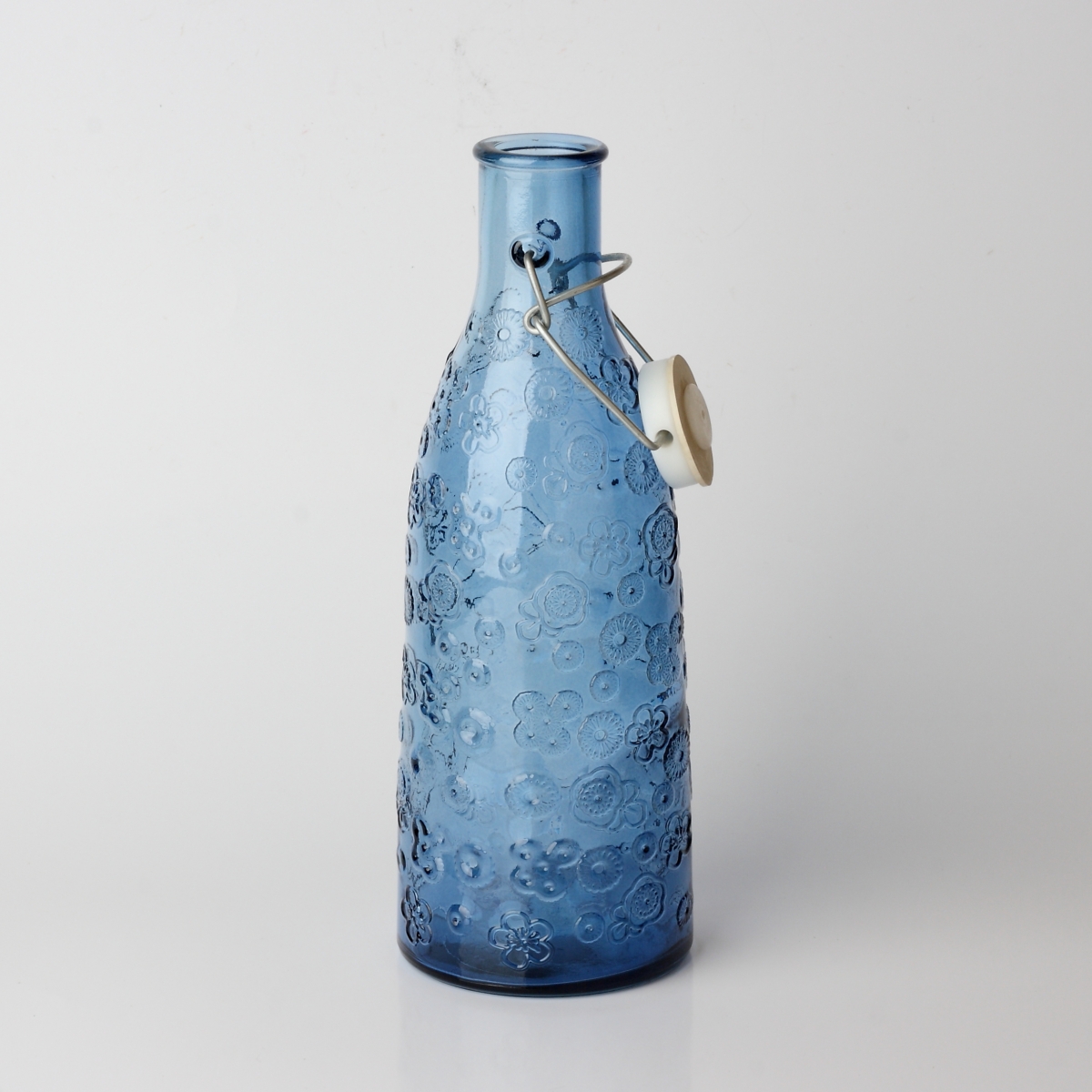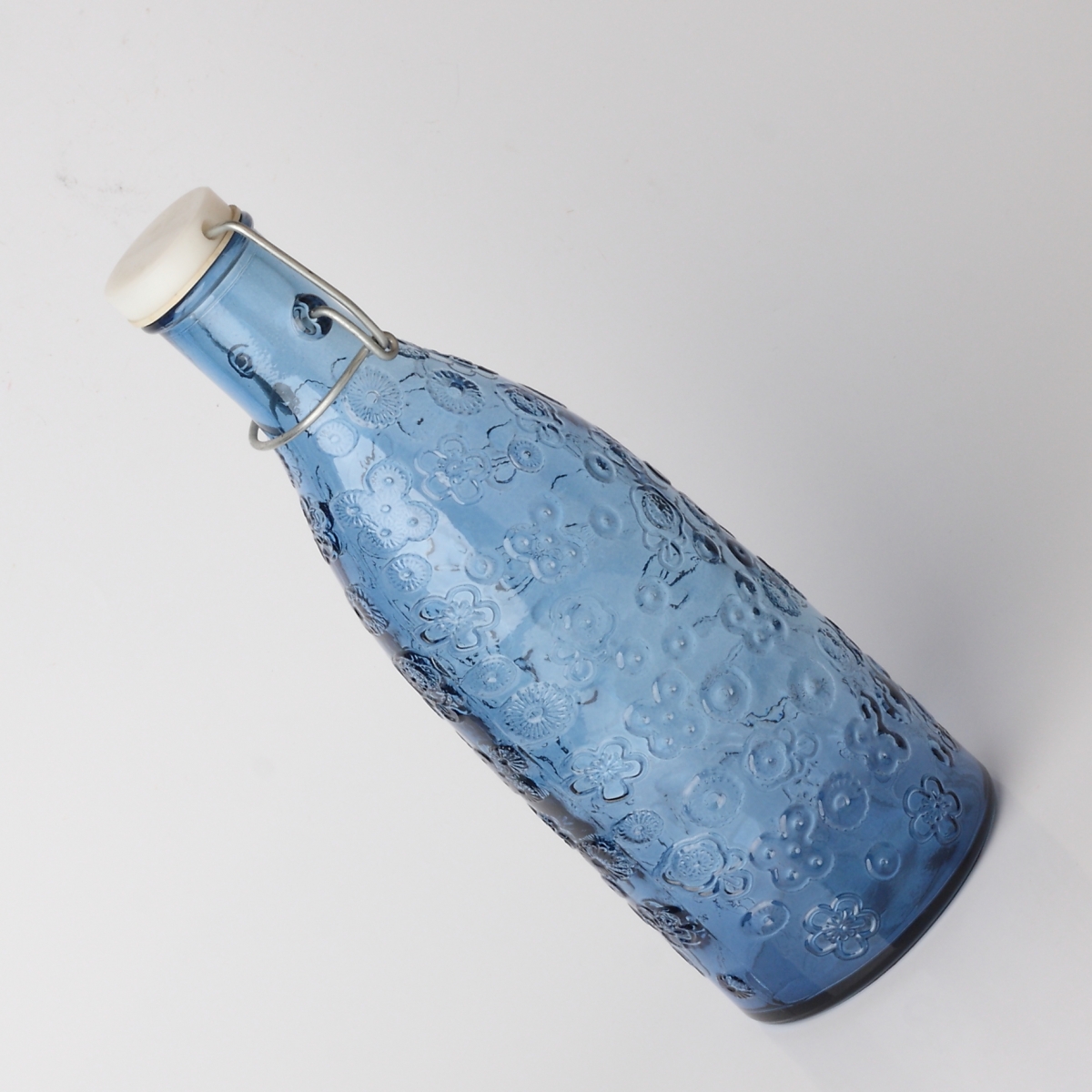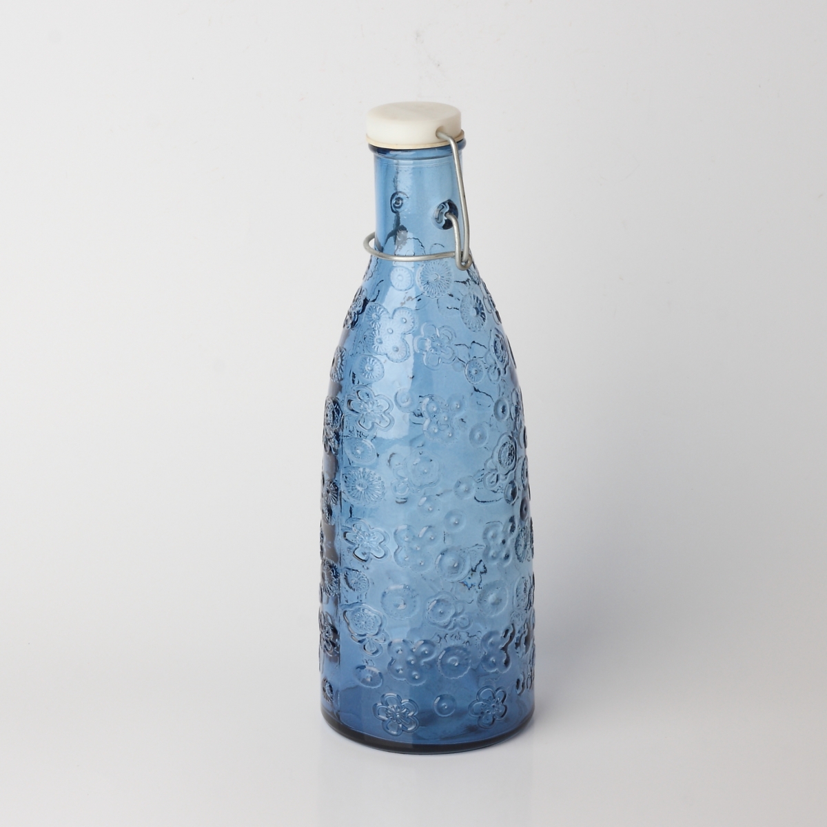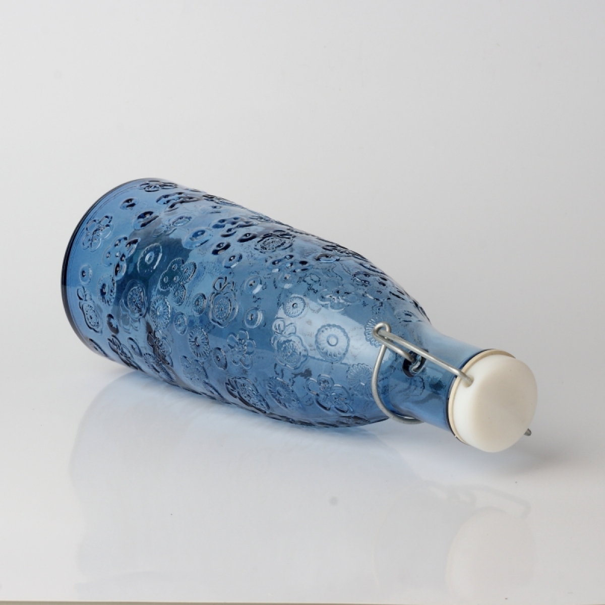 Praktická láhev s pákovým uzávěrem je vyrobená ze 100% recyklovaného skla a má překrásnou modrou bavu. Motiv drobných kvítků s modrou barvou skvěle ladí a společně jsou ideální kombinací do každé kuchyně.