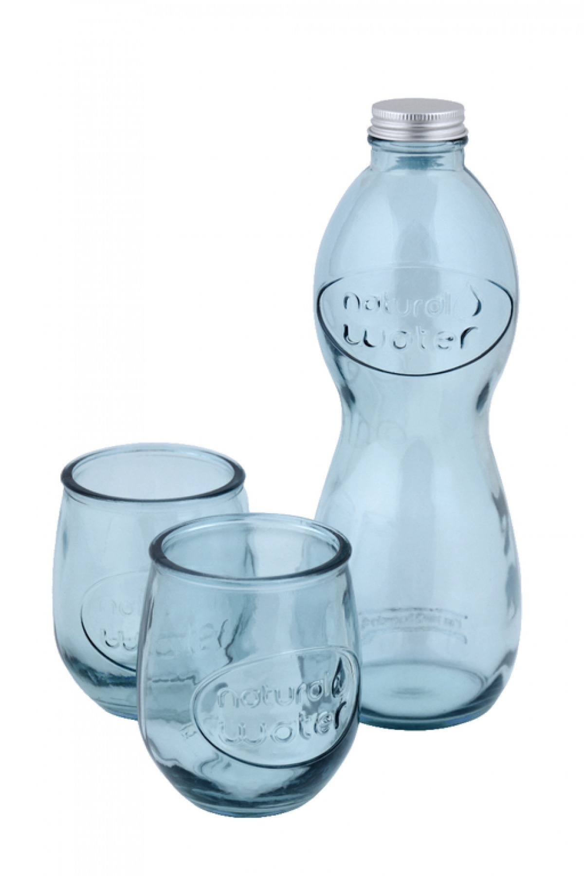 Lahev na vodu a 2 sklenice čiré