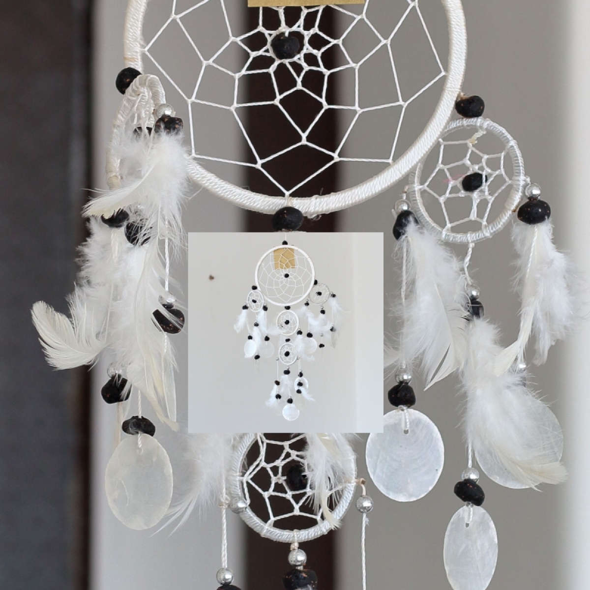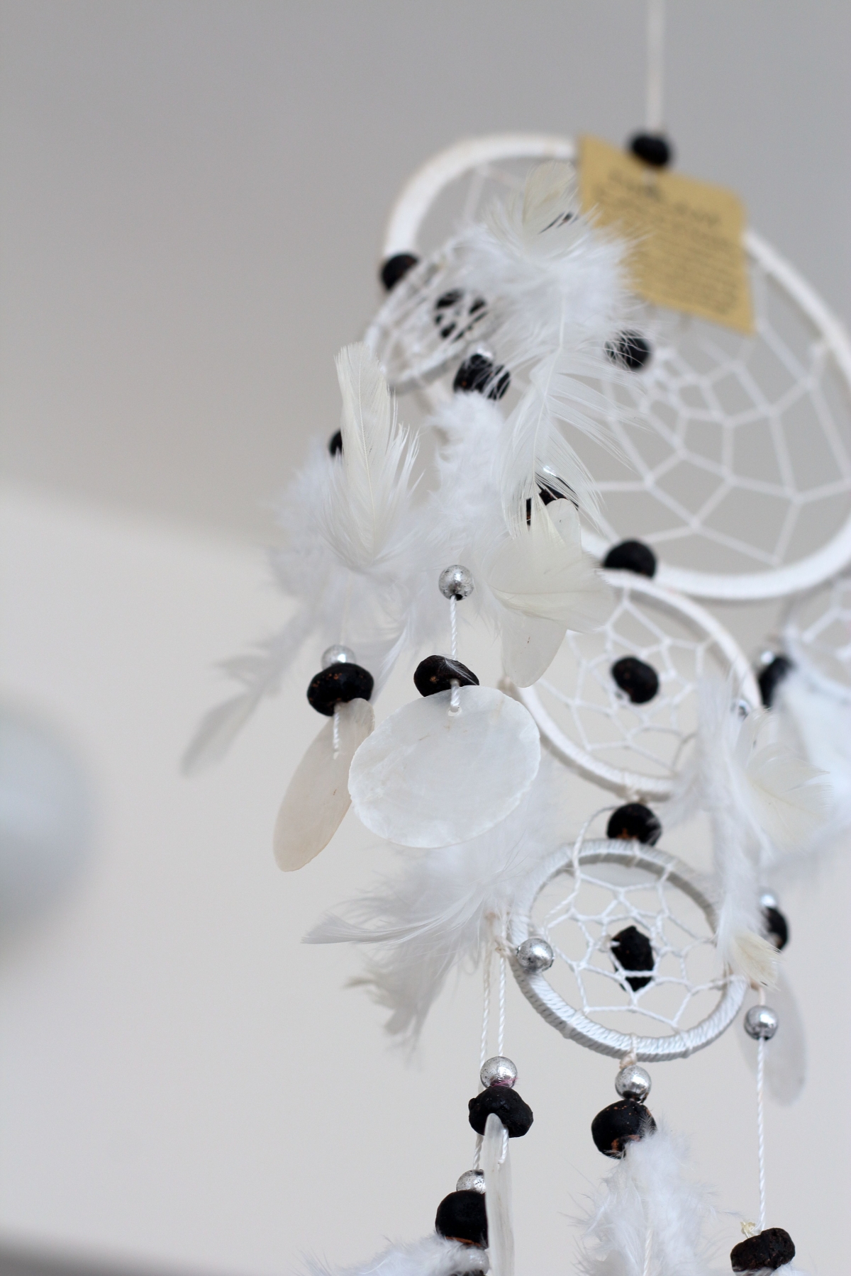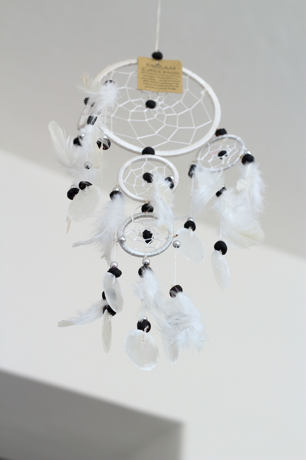 Lapač snů bílý 12cm vás ochrání v ložnici před špatnými sny. Lapač polapí všechny noční můry a nechá vás klidně spát.