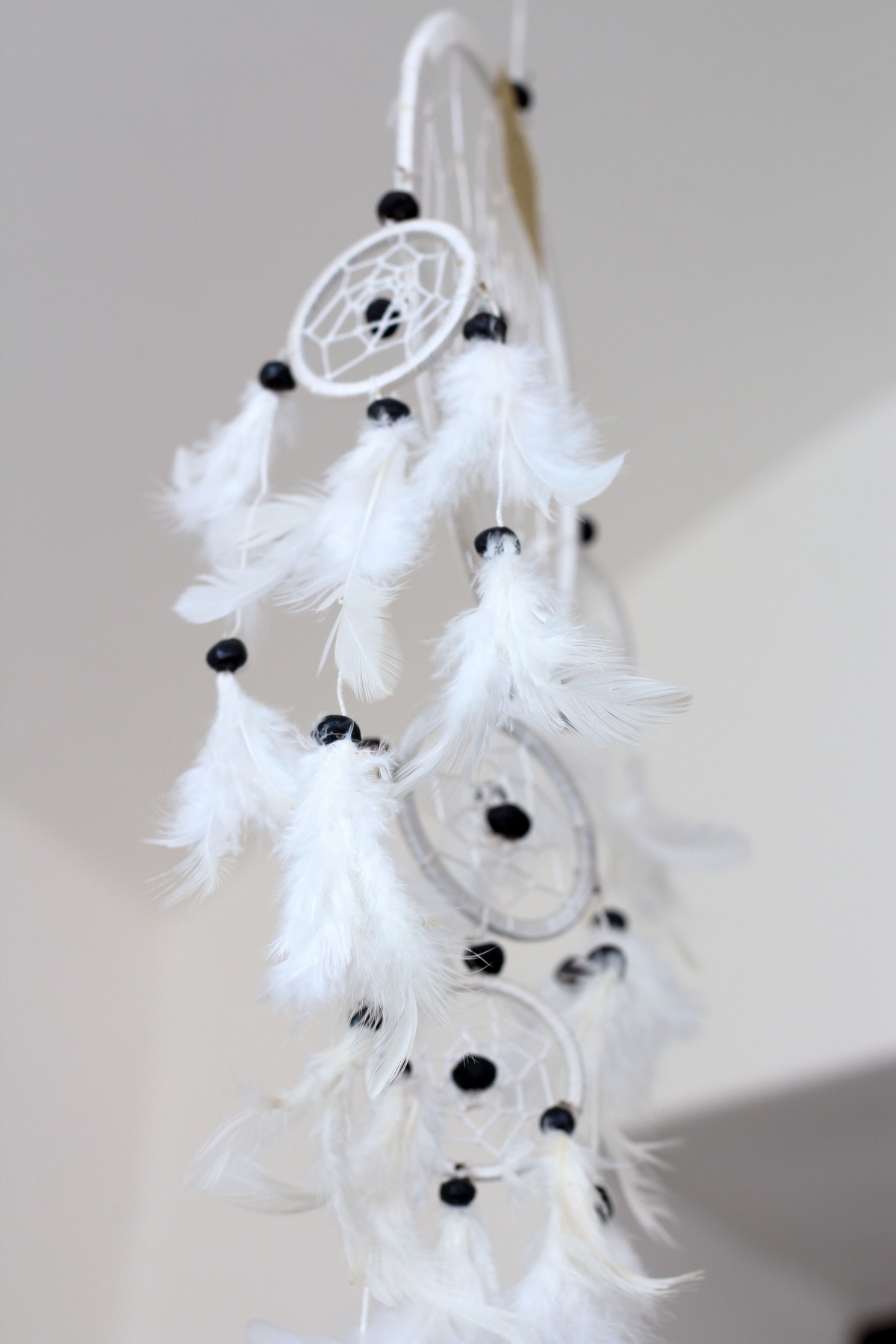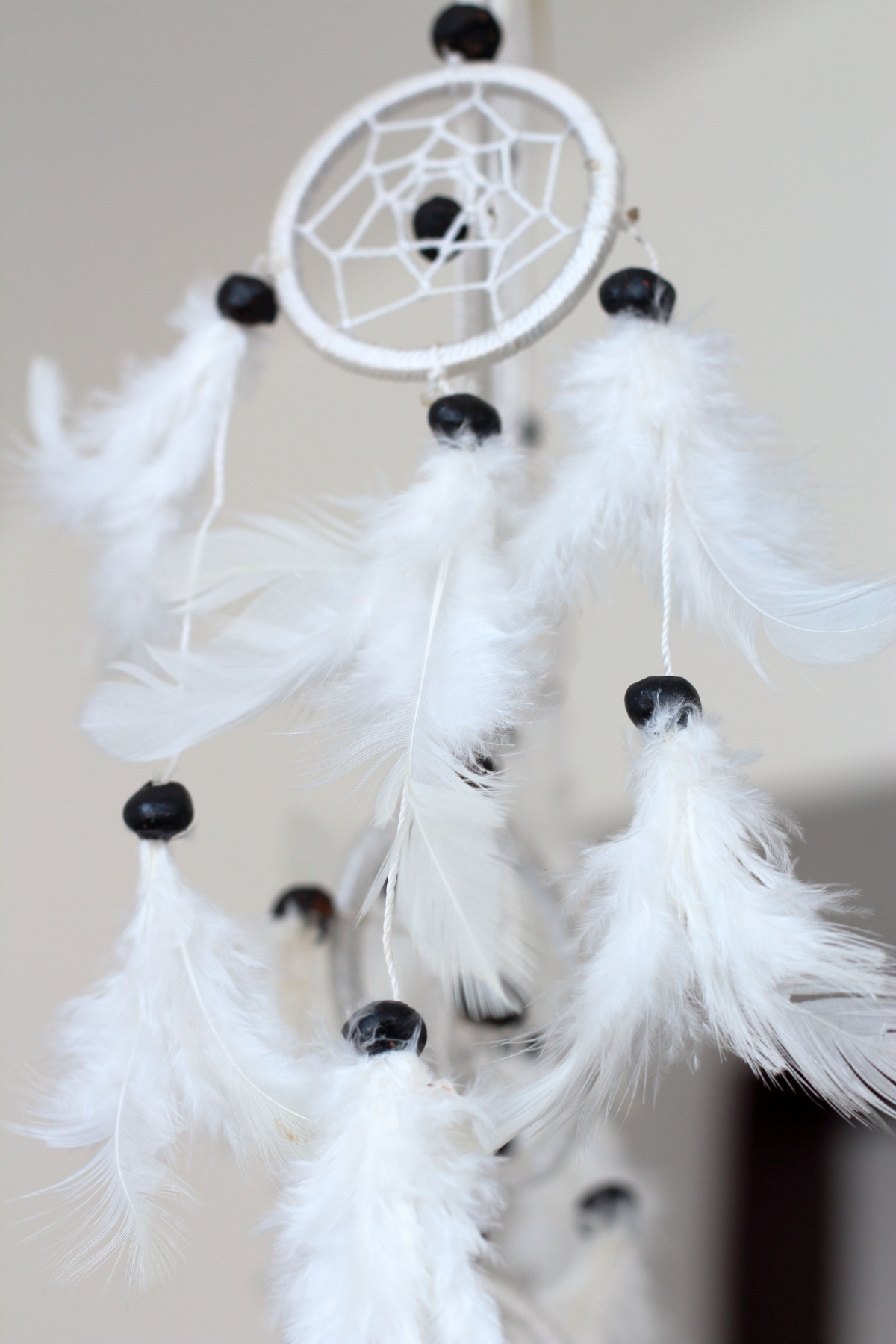 Lapač snů bílý 17cm chytá do svých sítí všechny špatné myšlenky a sny, které nás v noci tíží a ruší ze spánku.