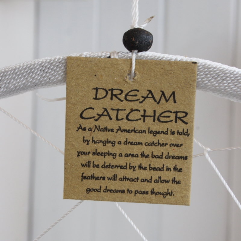 Lapač snů bílý 27cm vás ochrání v ložnici před špatnými sny. Lapač polapí všechny noční můry a nechá vás klidně spát.