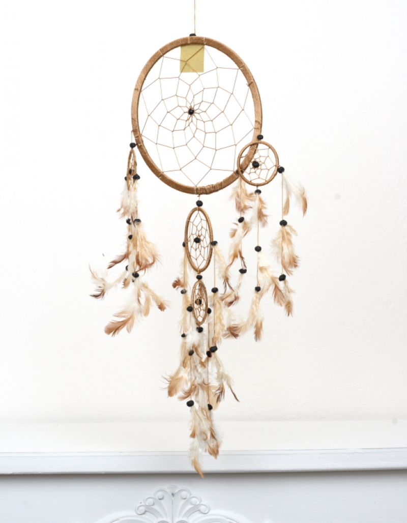 Lapač snů světle hnědý 22cm vás ochrání v ložnici před špatnými sny. Lapač polapí všechny noční můry a nechá vás klidně spát.