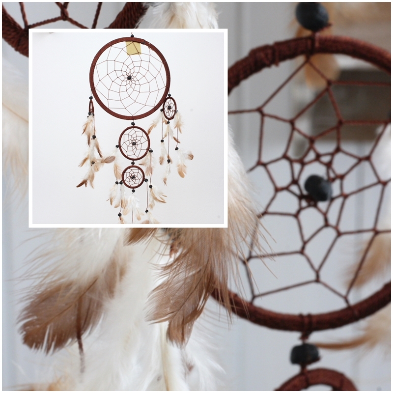 Lapač snů tmavě hnědý 22cm vás ochrání v ložnici před špatnými sny. Lapač polapí všechny noční můry a nechá vás klidně spát.