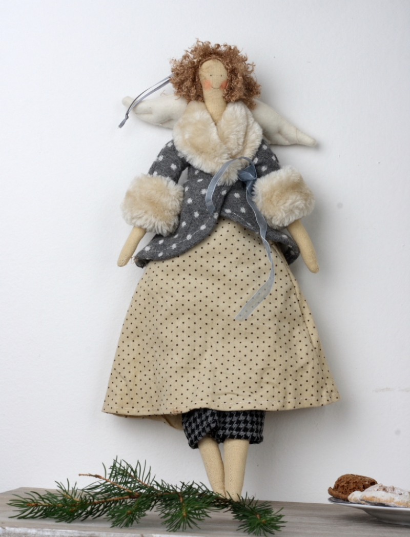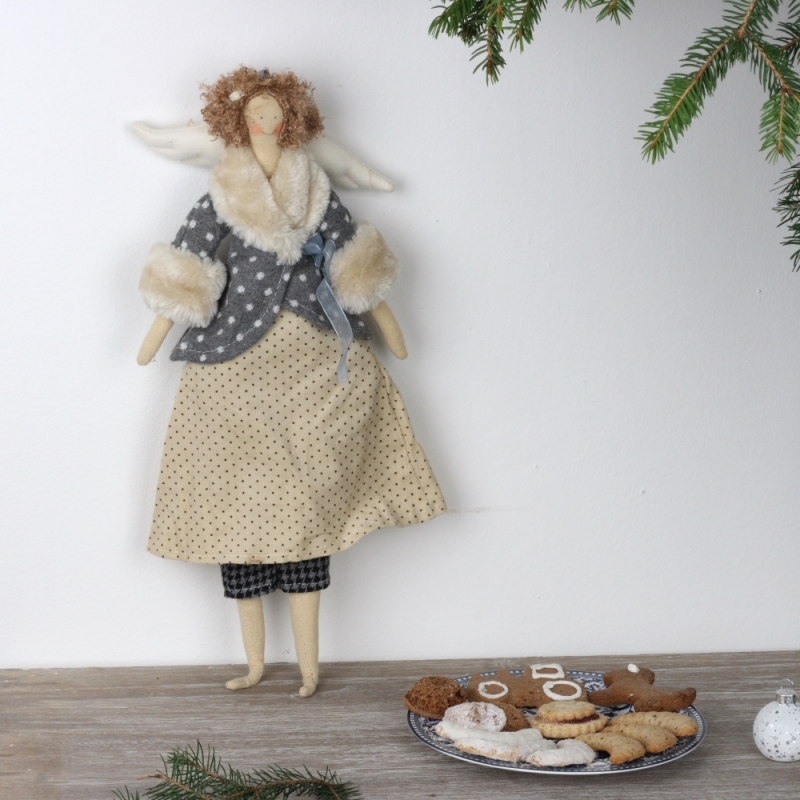 Látková andělka v kabátku 43cm najde svůj domov u romantických duší, které si potrpí na něžné drobnosti. Jste to právě vy? Nebo víte o někom, komu by udělala andělka radost?