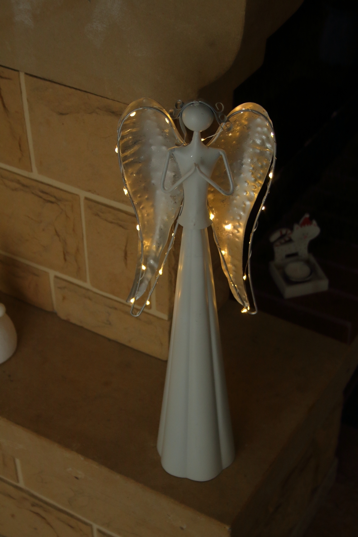 LED dekorace v podobě kovového anděla, který se modlí