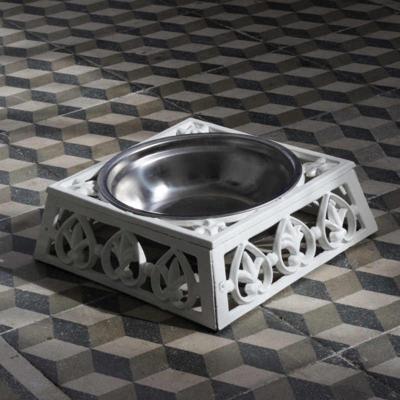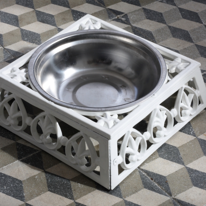 Litinová miska pro psa bílá 23x23cm Máte doma čtyřnohého miláčka a chcete pro něj to nejlepší? Chcete aby miska na žrádlo nehyzdila interiér? V tom případě si pozorně prohlédněte tuto krásnou litinovou misku v bílém provedení.