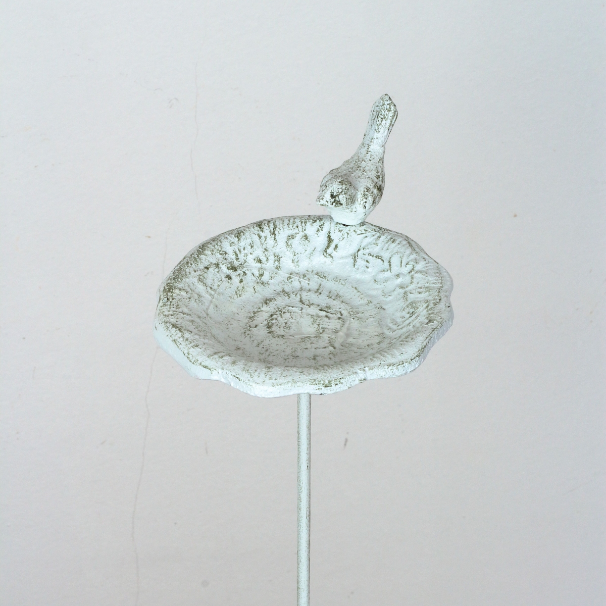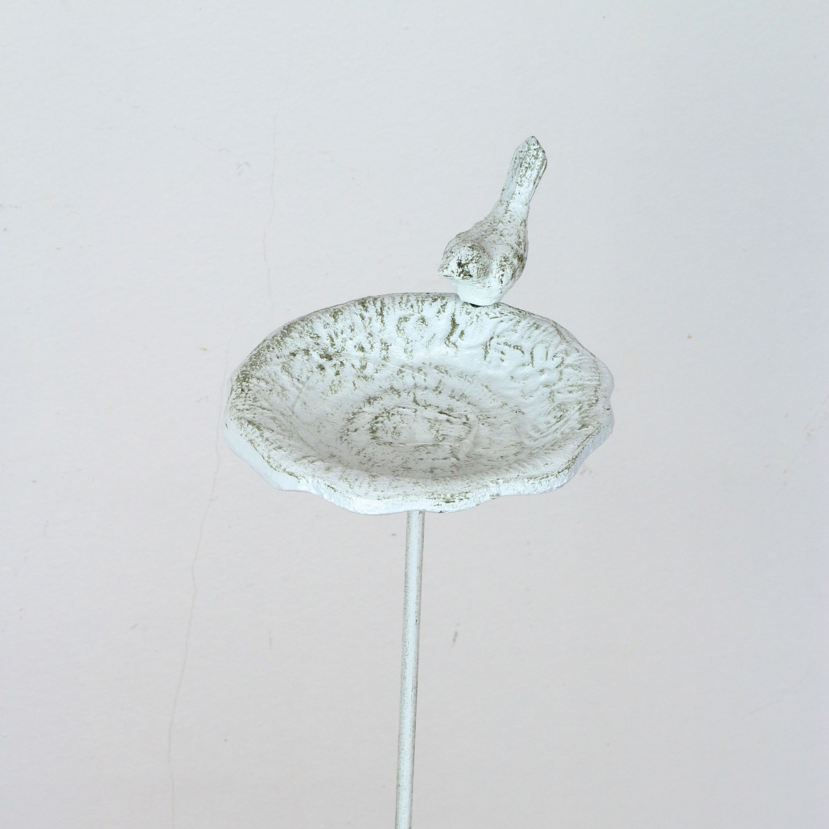 Litinové pítko zápich s ptáčkem bílé 75cm
