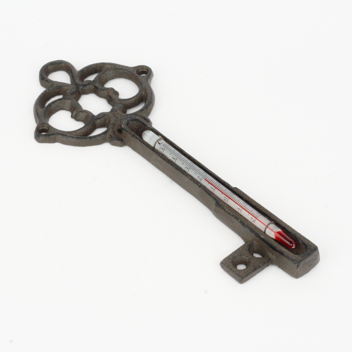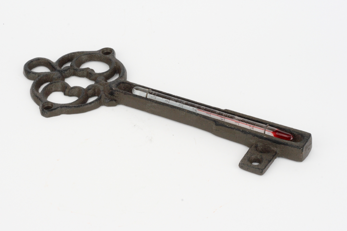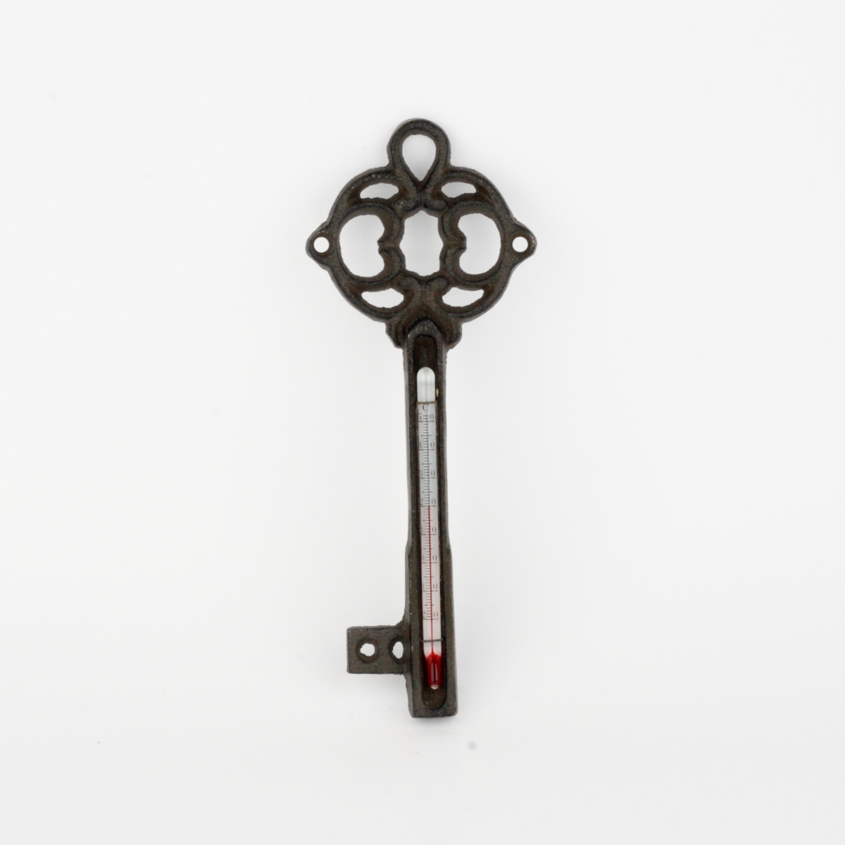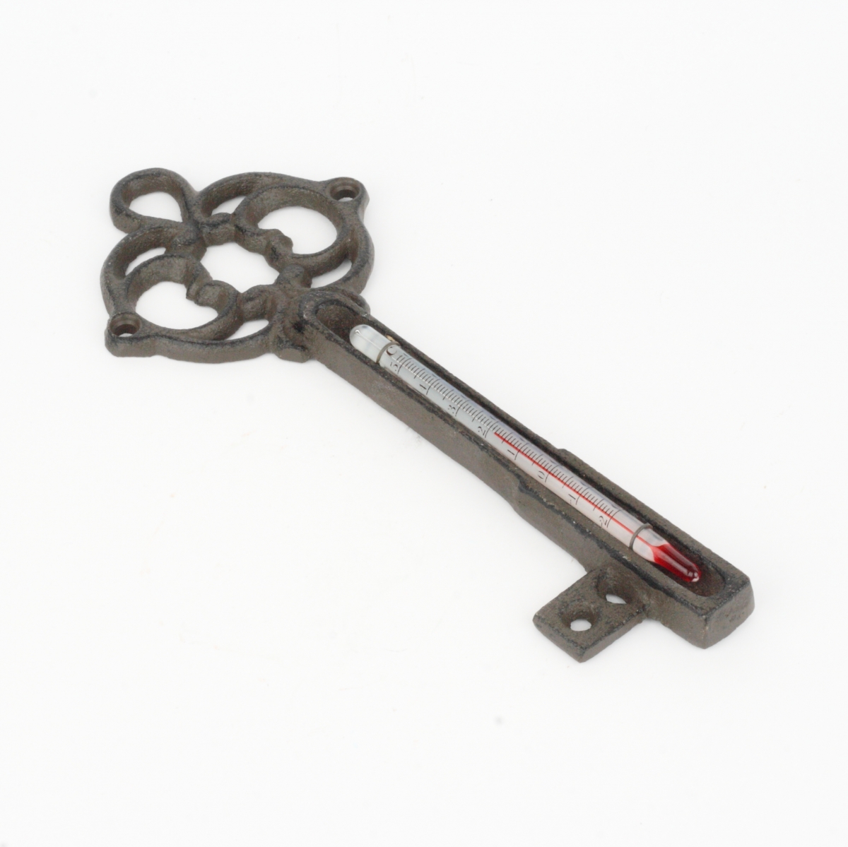 Litinový nástěnný teploměr klíč tmavý 20,5cm