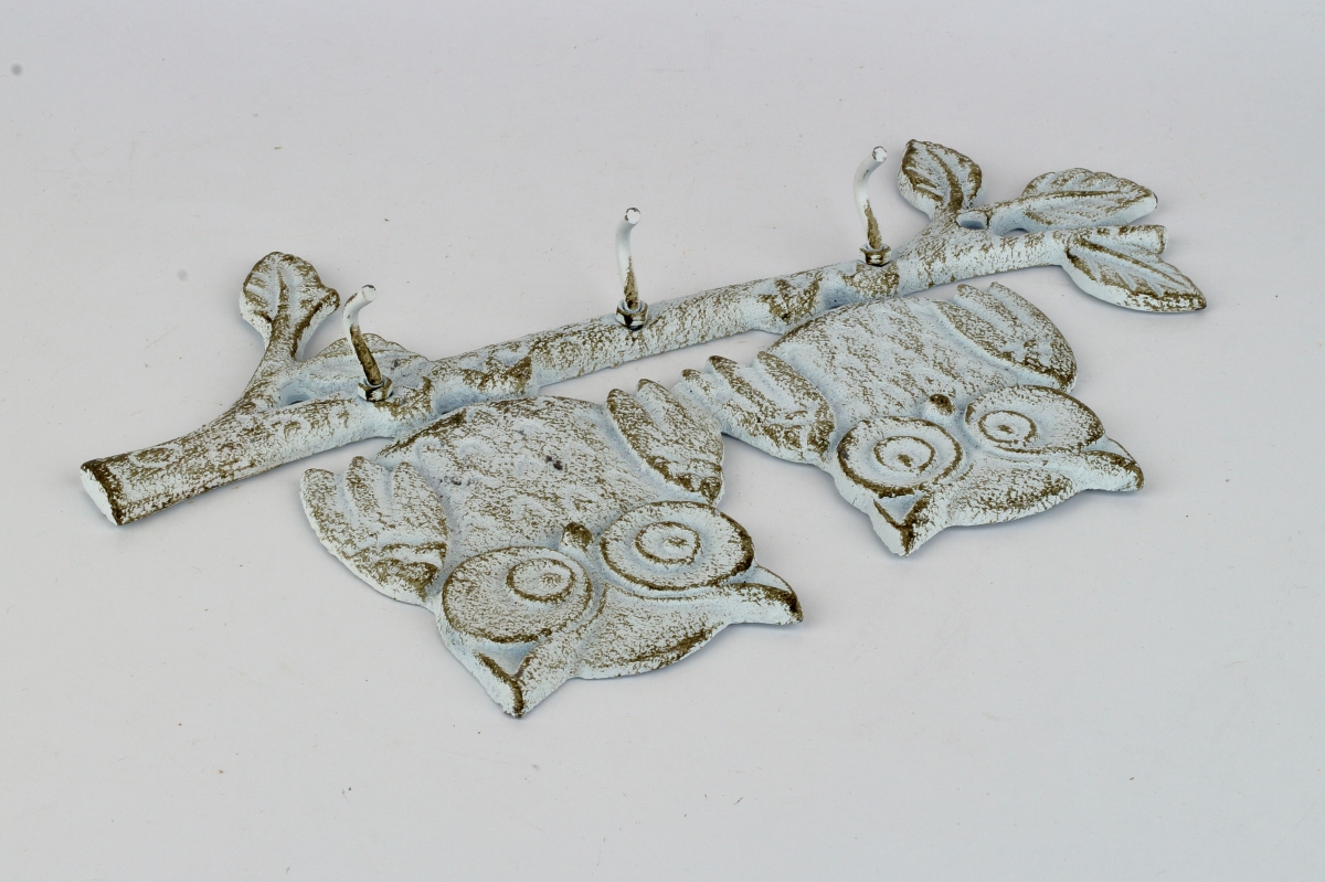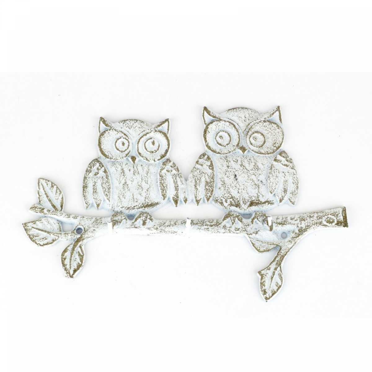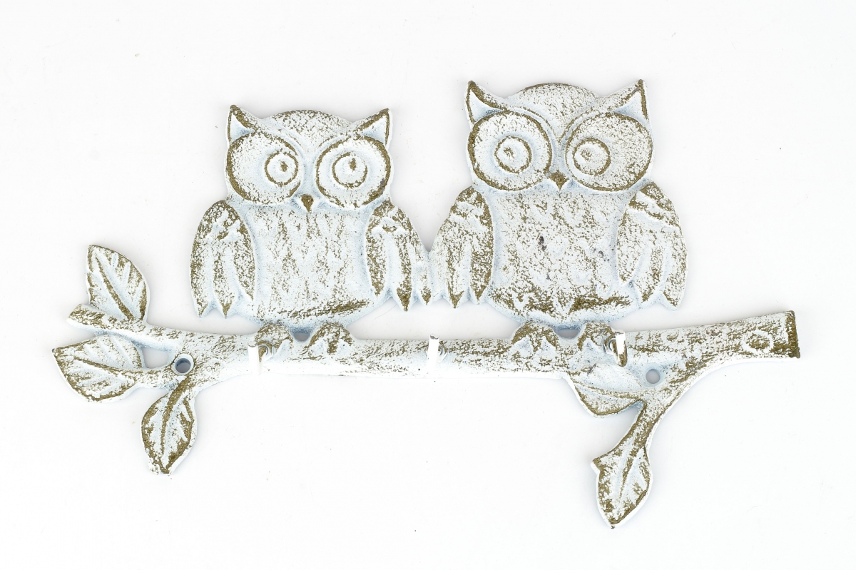 Litinový nástěnný věšák sovy bílý 27x17,5cm