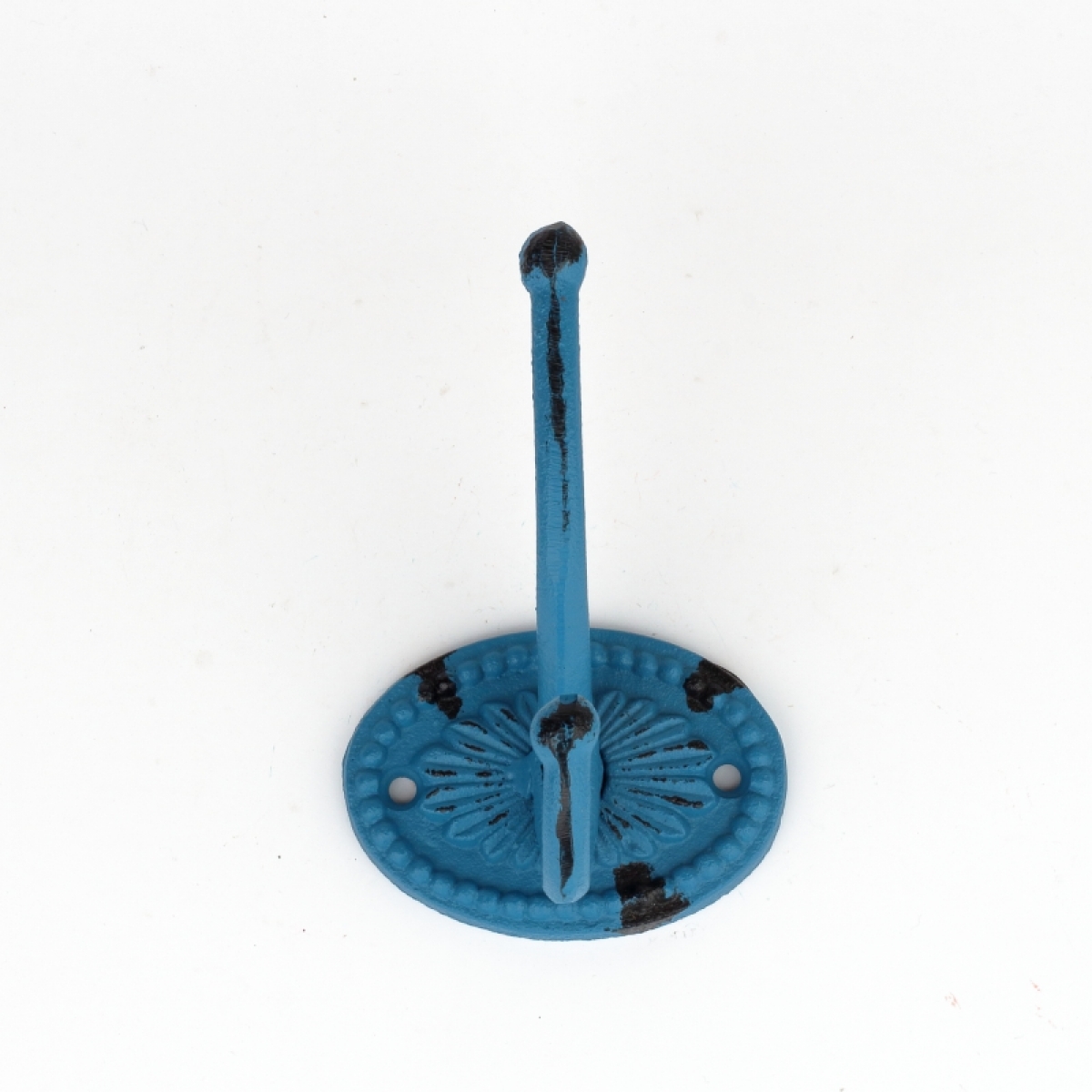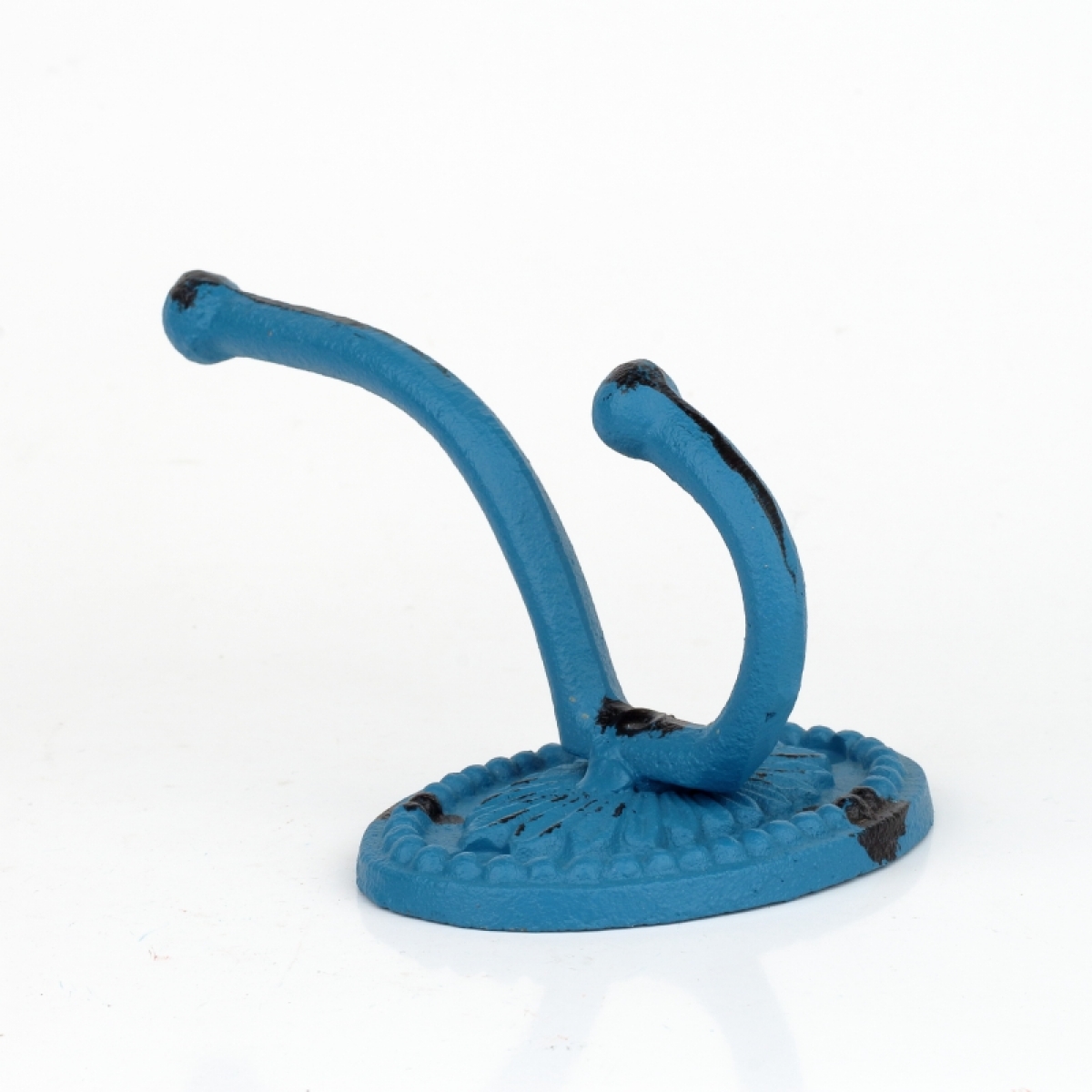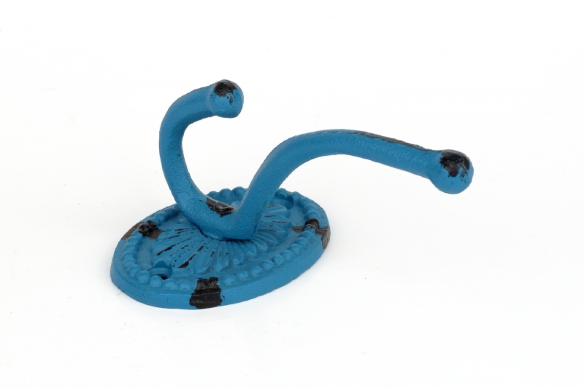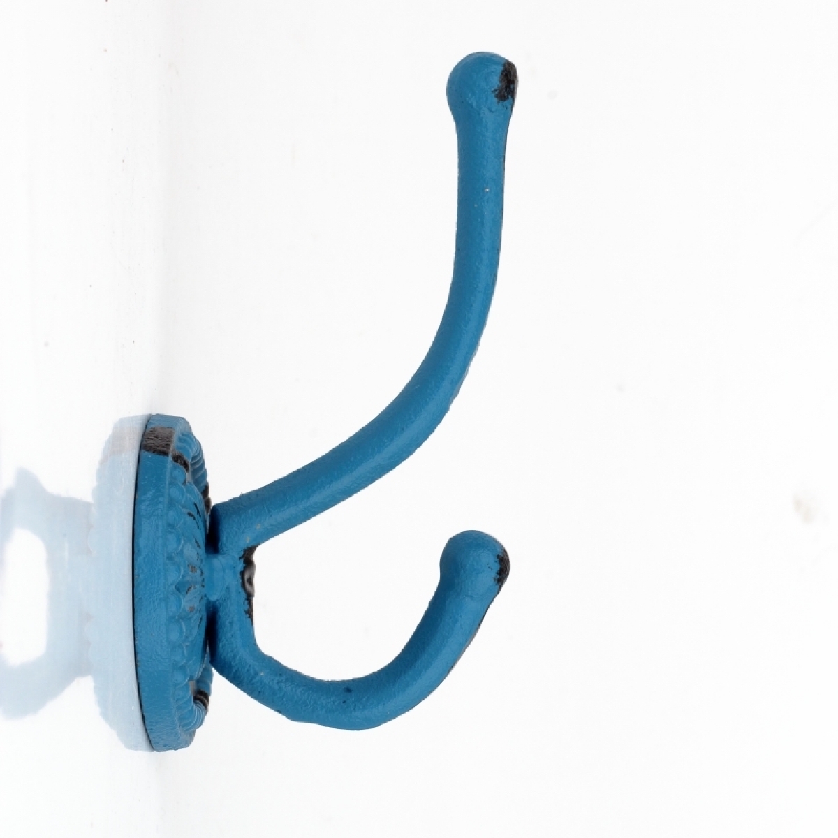 Litinový retro věšák na kabáty oválný modrý je praktickým pomocníkem snad do každé mítnosti v domě, typickým využitím je však vytvořit z háčků malou věšákovou stěnu v předsíni, kde slouží na odkládání kabátů a bund.