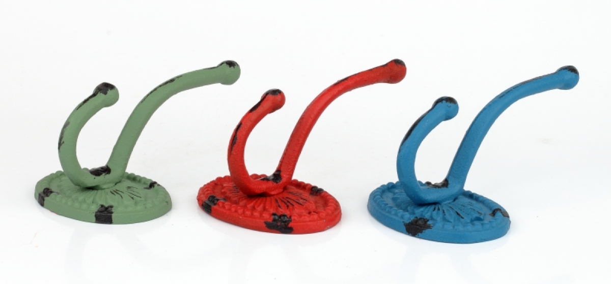 Litinové háčky jsou dostupné ve třecha barvách. Kolekce retro litiny nabízí ve stejném designu několik typů háčků, věšáků i šikovné zarážky na dveře. Vstup do domu tak můžete vyladit do posledního detailu!