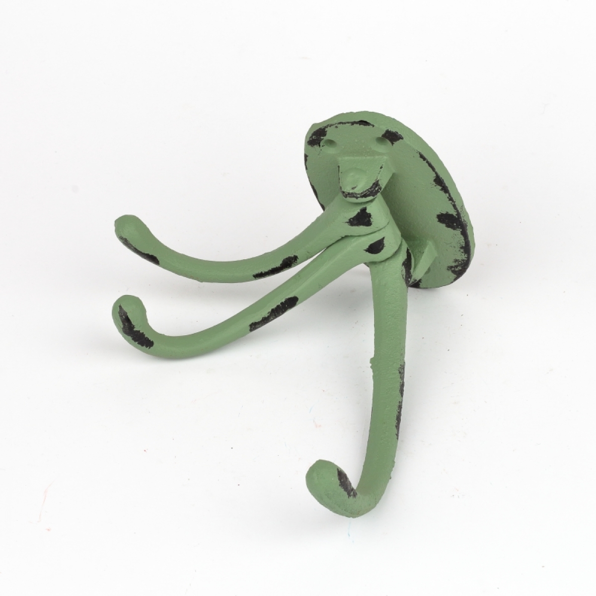 Litinový retro věšák na ručníky trojháček zelený