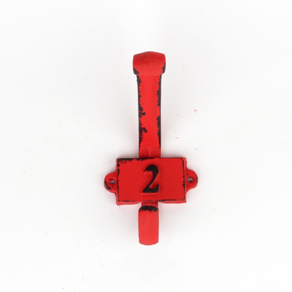 Litinový retro věšák na stěnu s číslem 2 červený