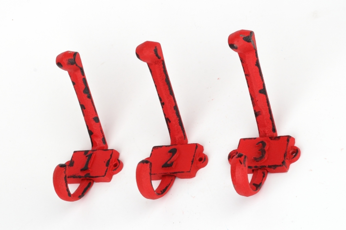 Litinový retro věšák na stěnu s číslem 2 červený využijete na kabáty i ručníky. Úžasné barvy a retro design dělají z obyčejného věšáku nepřehlédnutelný prvek interiéru.