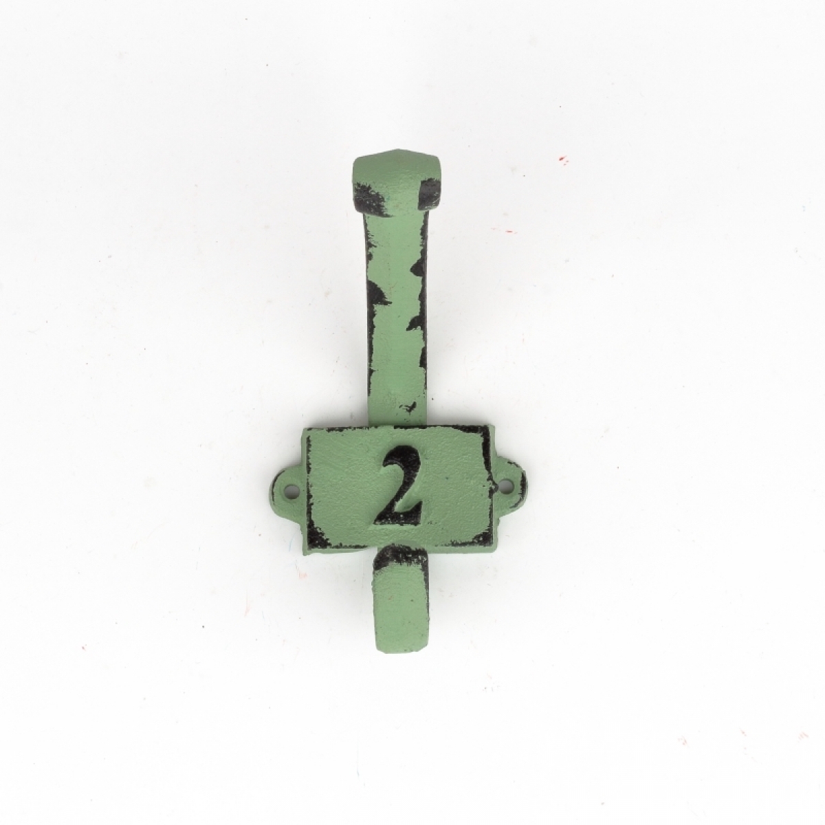 Litinový retro věšák na stěnu s číslem 2 zelený