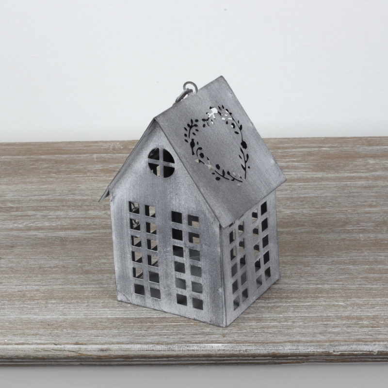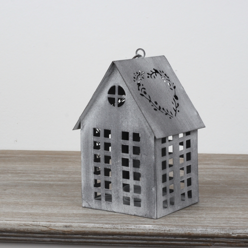 Lucerna domeček šedý 17x12x10cm