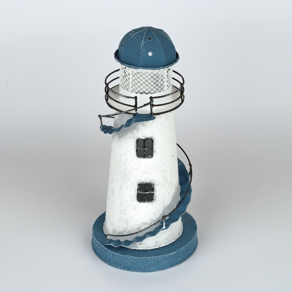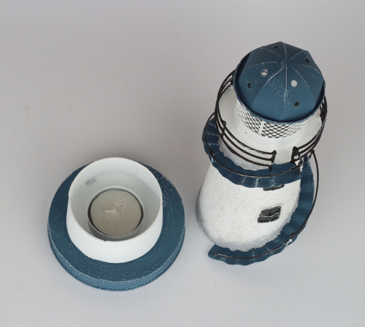 Lucerna na čajovou svíčku maják modrý xcm Vás přenese myšlenkami k mořskému pobřeží. Ať už si chcete vnést domů vzpomínky na letní dovolenou nebo zařizujete stylový pokoj v námořním stylu, tato malá lucernička bude vypadat vždy dokonale!