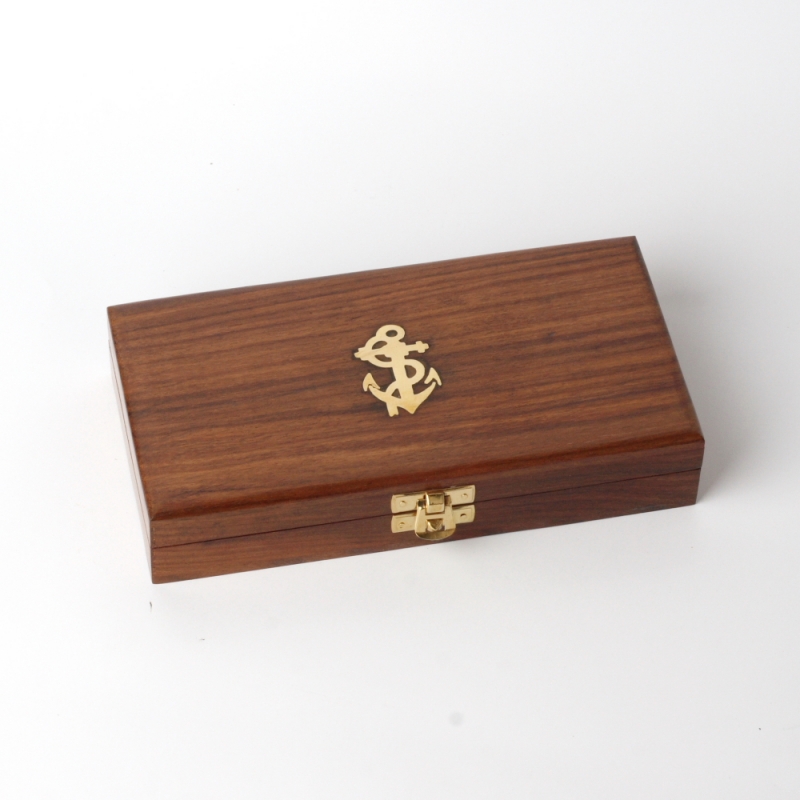 Lupa ve dřevěném pouzdru 15cm s motivem námořní kotvy na víku je kvalitně zpracovaným funkčním doplňkem v námořnickém stylu.
