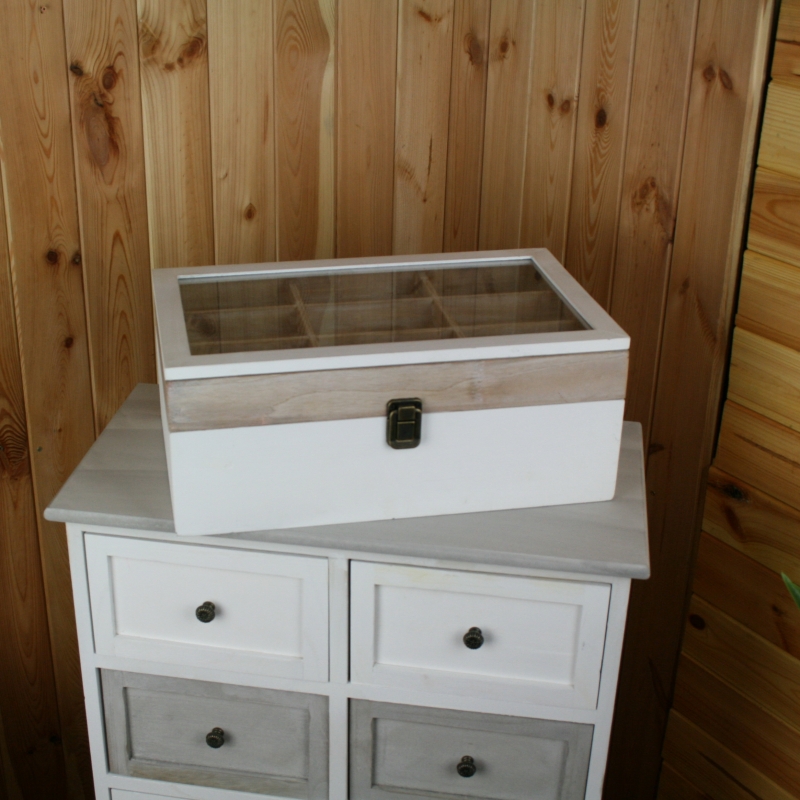 Luxusní šperkovnice je ručně vyrobená ze dřeva v kombinaci přírodní hnědé a bílé barvy.