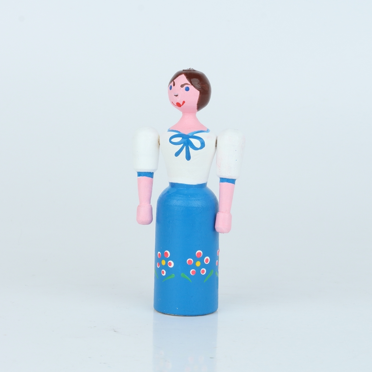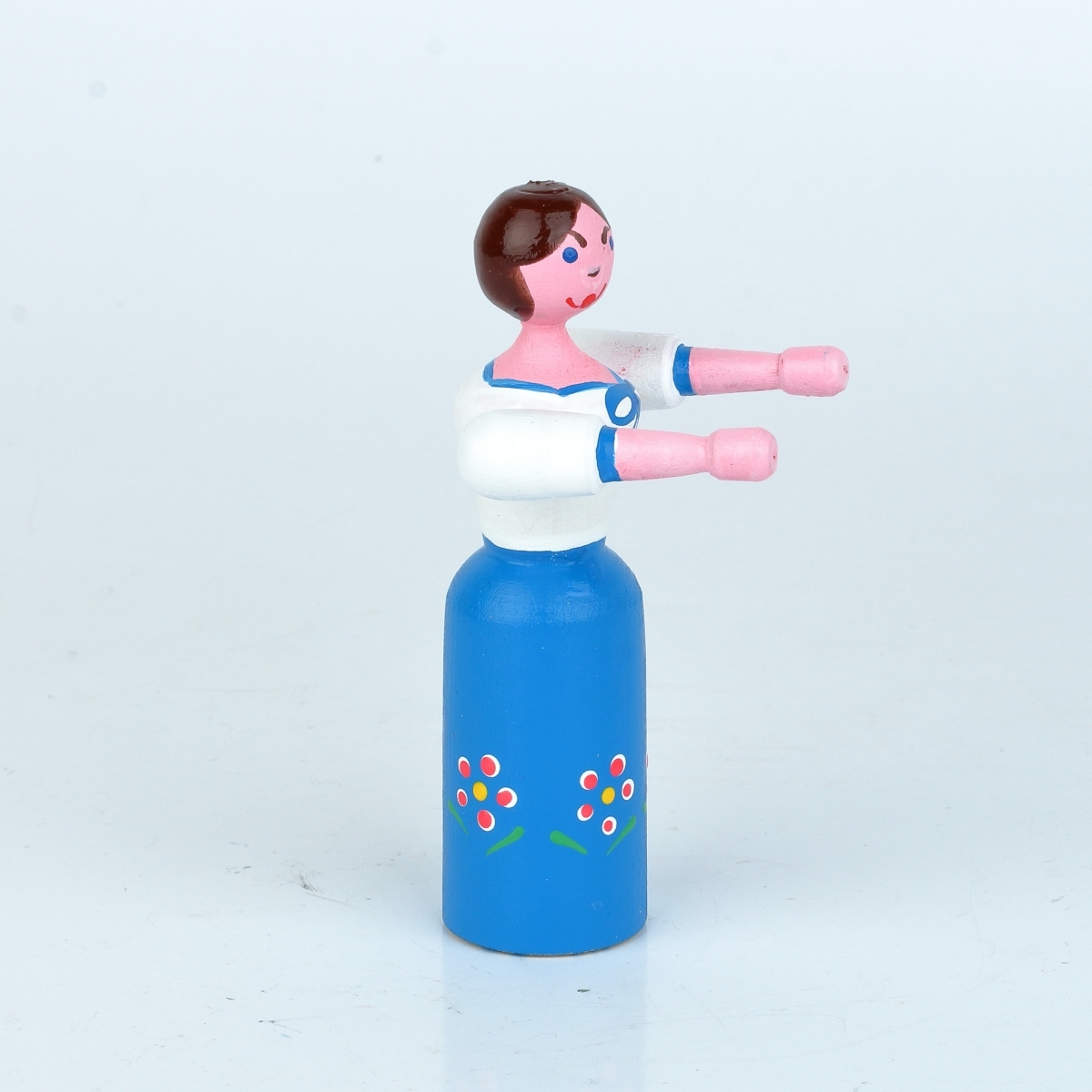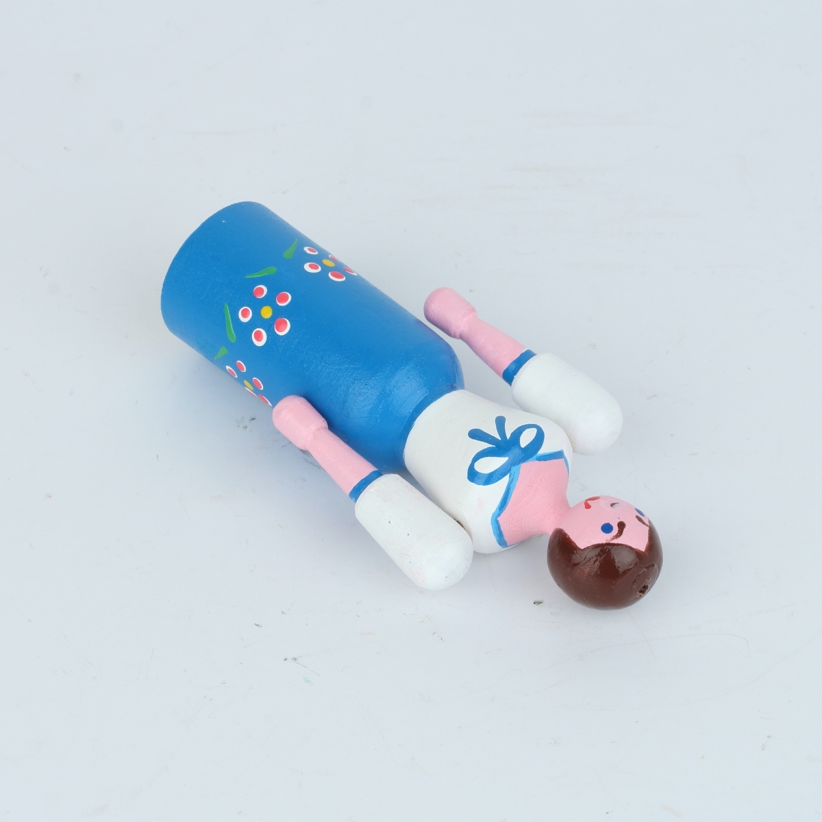 Malá dřevěná panenka s pohyblivými ručičkami. Ručně vyrobené a malované v ČR.