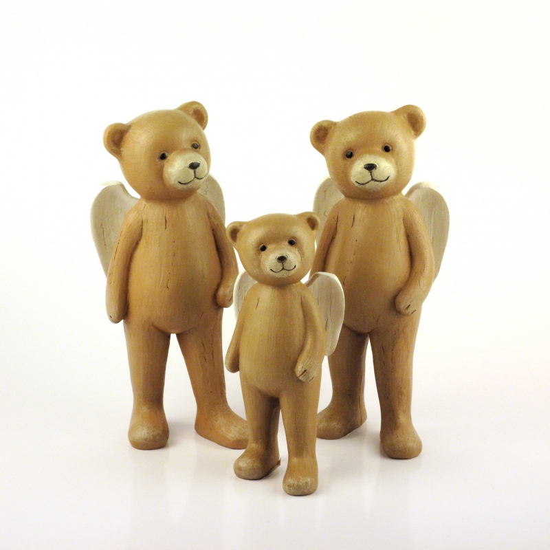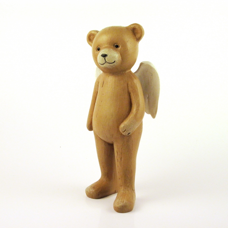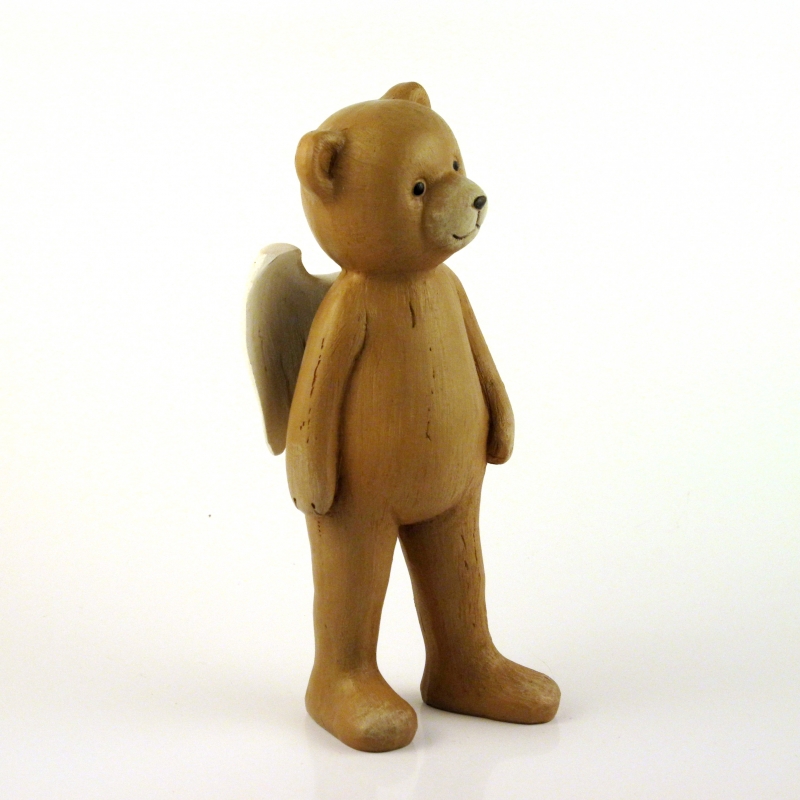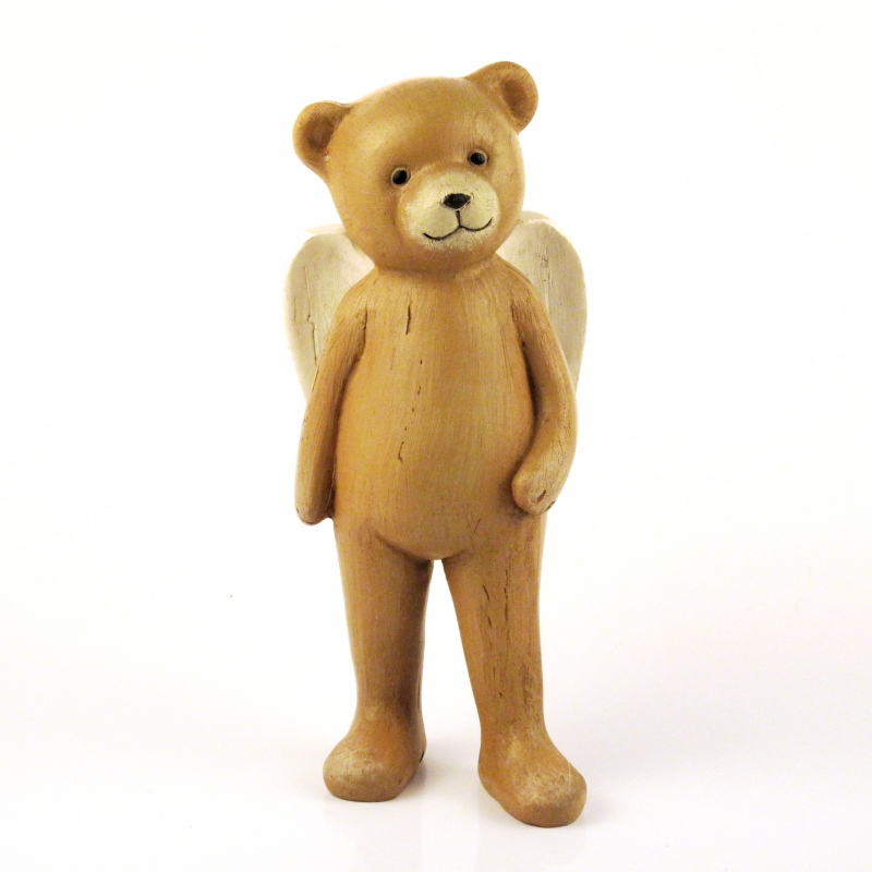 Postavička medvídka andílka je vysoká 18cm, vyrobená z polyresinu. Na titulním obrázku je i vyobrazen medvídek menší dek1387, kterým lze doplnit tuto postavičku andílka tatínka.