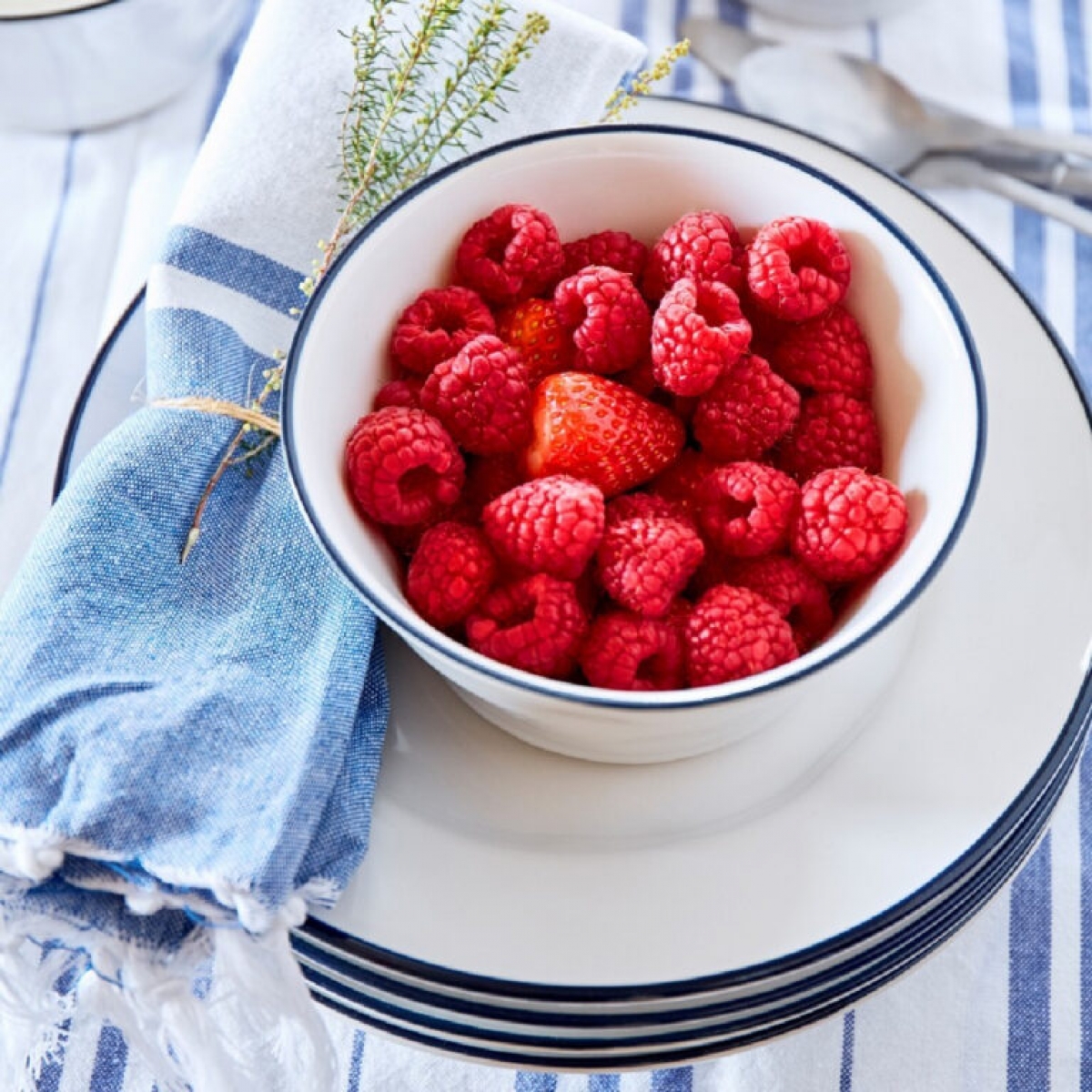 Jediným výrazným prvkem kolekce BEJA, je modrý lem na horním okraji misky. Tento lem se opakuje na všech kouscích z této kolekce a vše tak spolu krásně ladí.