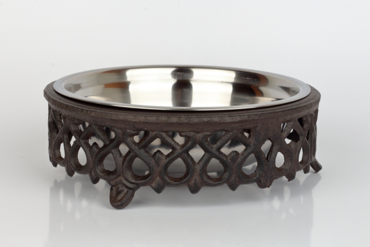 Pořiďte svému pejskovi misku, která něco vydrží. Krásná zdobená litinová konstrukce má praktickou nerezovou misku, snadno ji vytáhnete a umyjete.