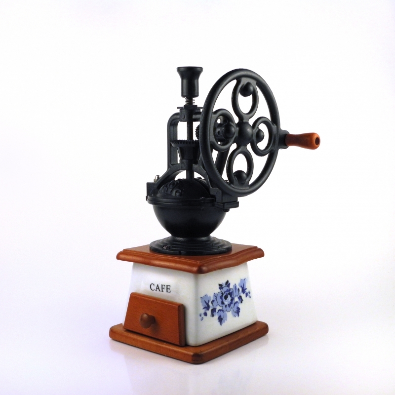 Ruční mlýnek na kávu porcelán s kolem