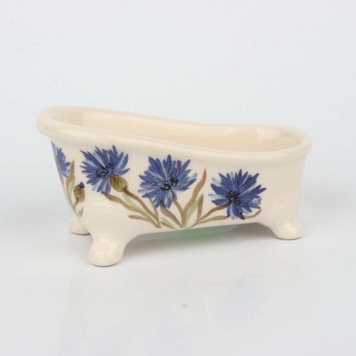 Mýdlenka vana chrpa 15x7x7cm na klasickou kostku tuhého mýdla. Trend tekutých mýdel sice pokračuje, ale spousta z nás se rádo vrací k těm tuhým, především přírodním mýdlům. Tak si dopřejte pořádnou mýdlenku, která bude ozdobou koupelny.