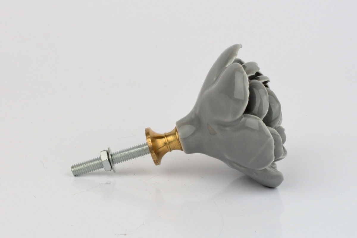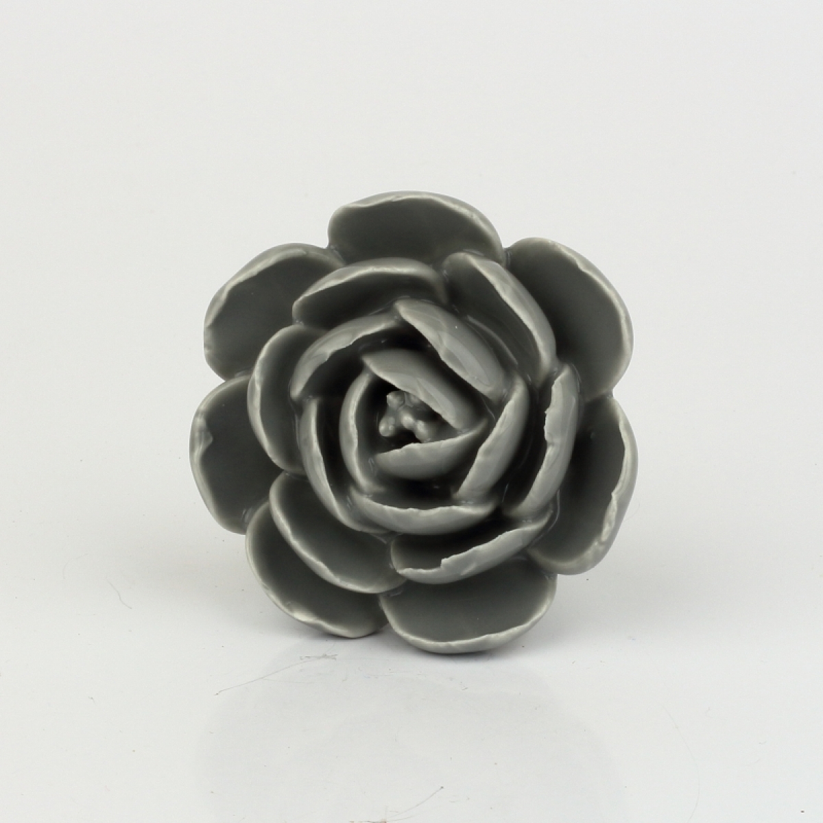 Nábytková úchytka keramický květ tmavě šedý 5cm