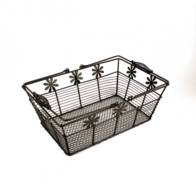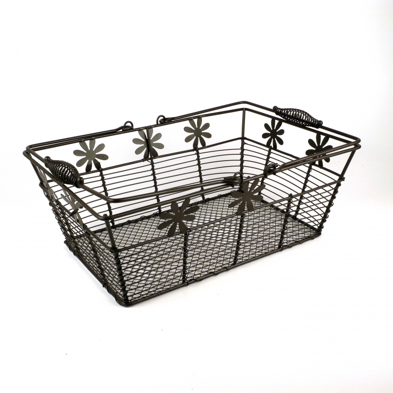 Drátěný nákupní košík o rozměrech 30x21x11cm, je vyroben ze silného pevného drátu a drátěného pletiva.
