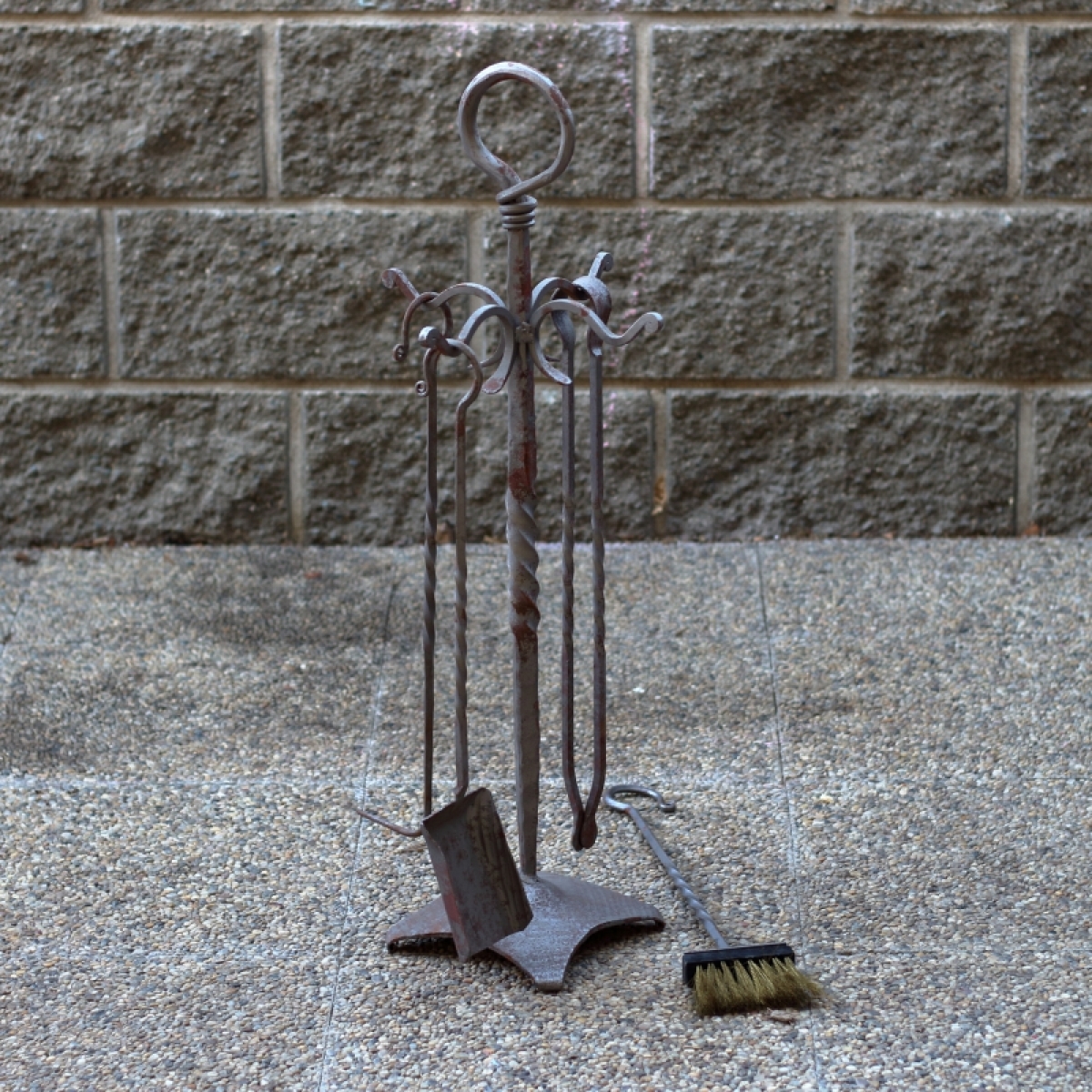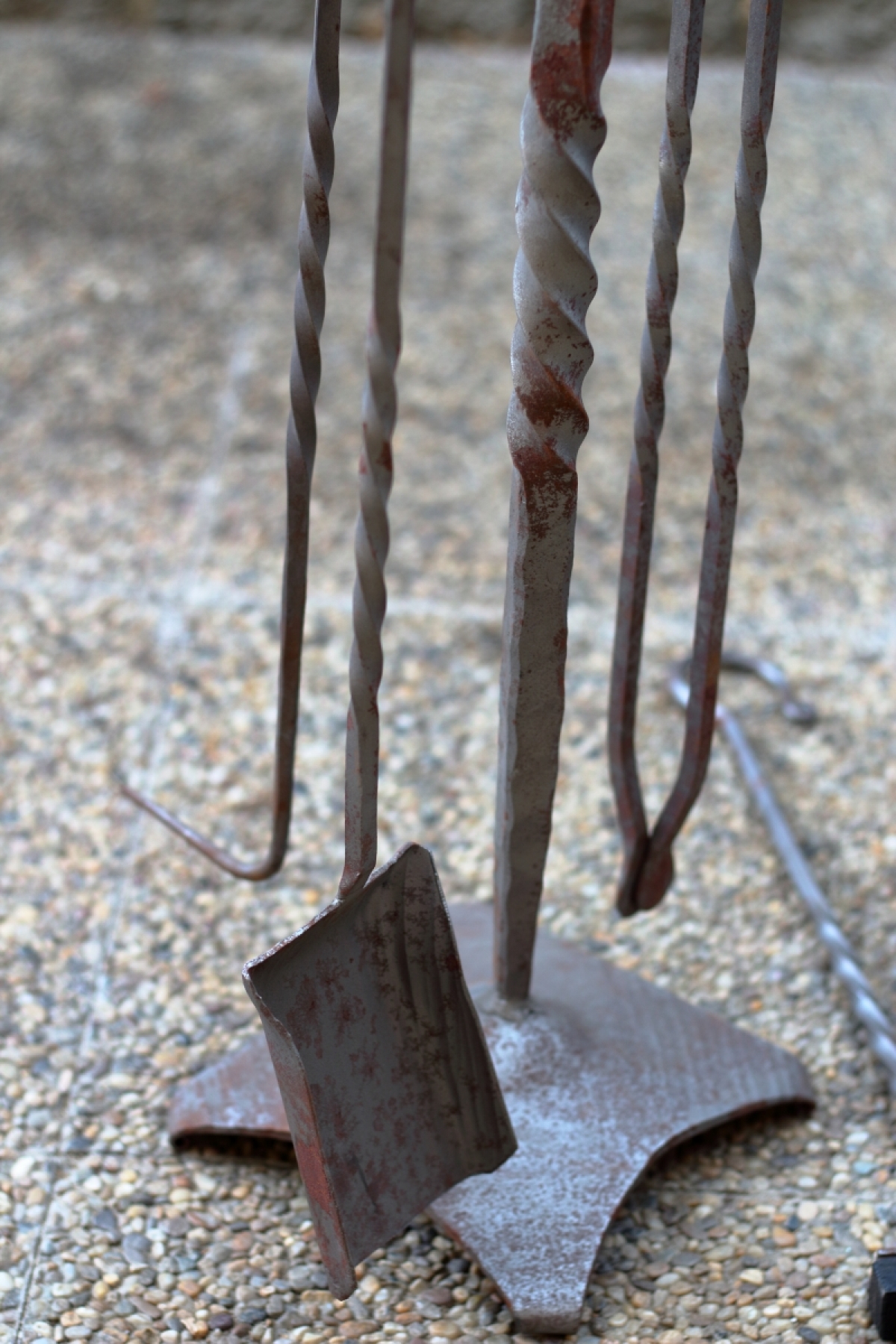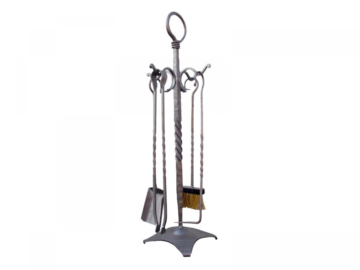 Nářadí ke krbu bez povrchové úpravy se 4 komponenty.