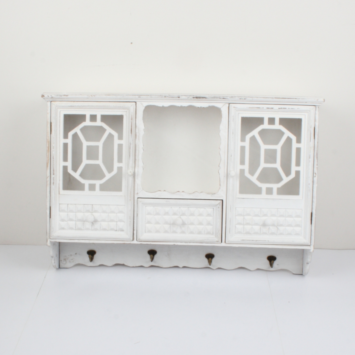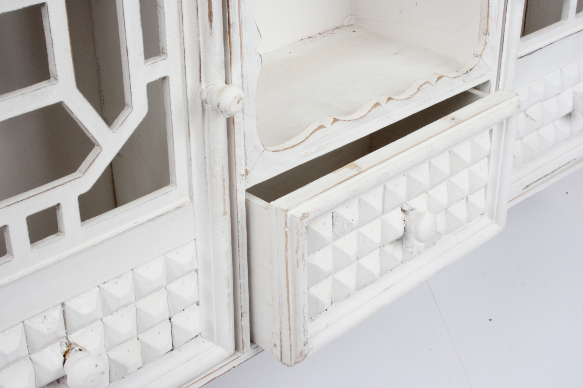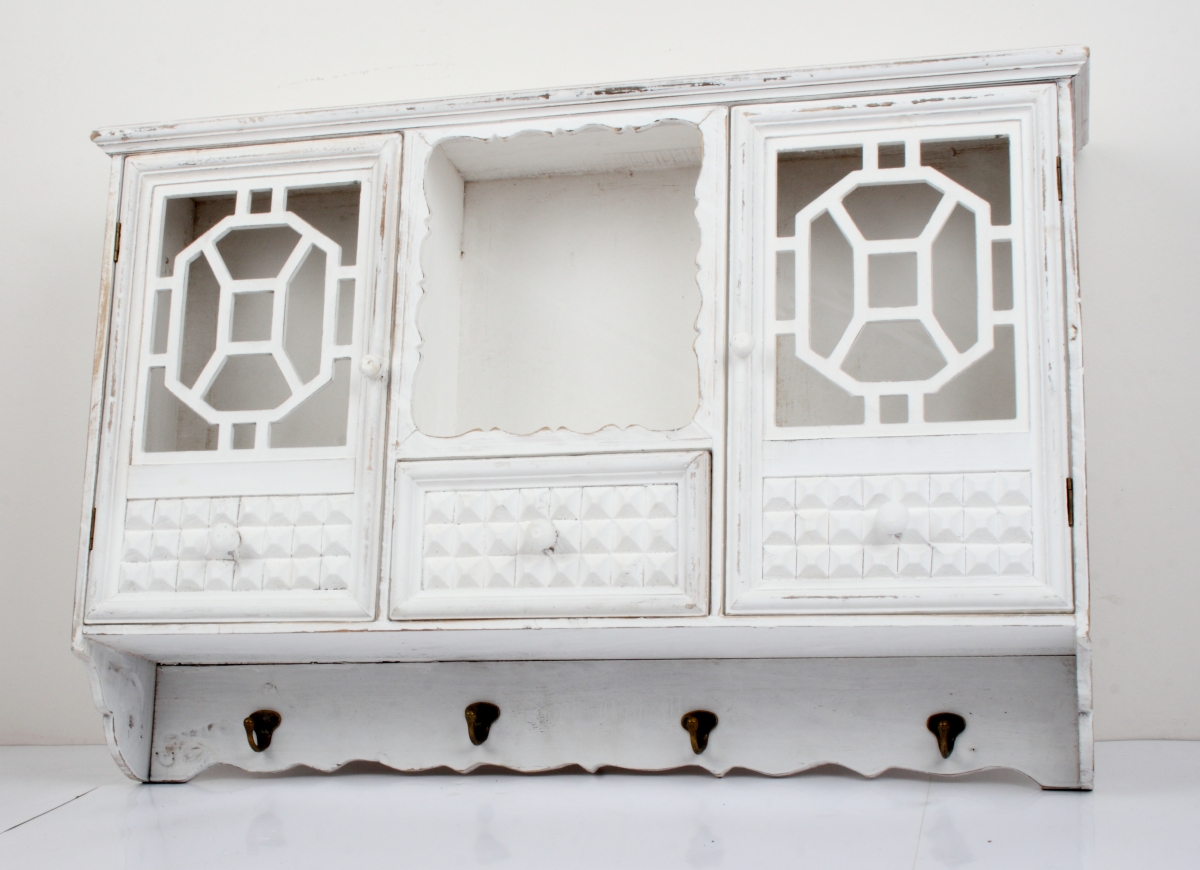 Nástěnná skříňka ve venkovském stylu bílá 80x55,5x17cm je skvělým základem pro interiér zařízený v atmosféře starých časů.