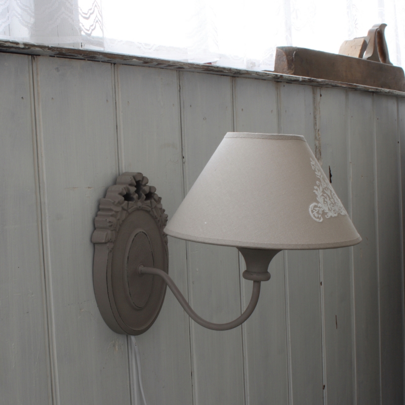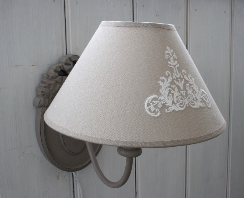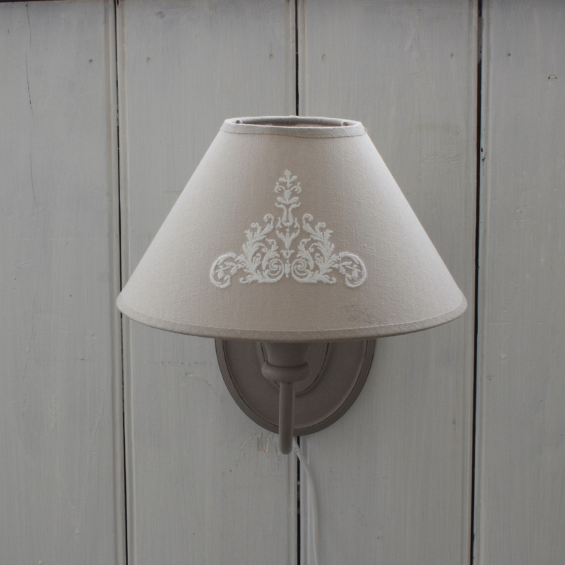 Nástěnná vintage lampa 26cm je velmi krásným typem osvětlení, které dodá prostoru špetku romantiky a luxusu. Překrásný nástěnný podstavec je ve vrchní části bohatě ozdoben. Tmavší podstavec je doplněn o světlejší cylindr se světlou výšivkou. Vytváří tak dokonalý kontrast a zachovává jemné a decentní tóny.