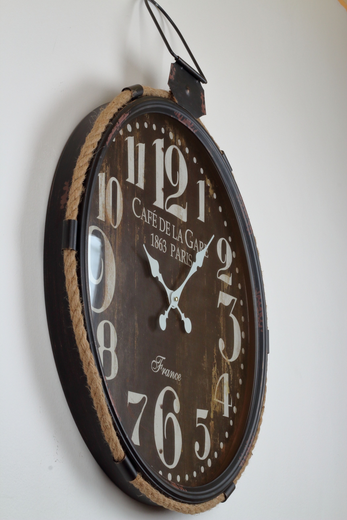 Nástěnné hodiny 64x68cm hnědé s velkými bílými číslicemi se stanou dominantou každé místnosti.