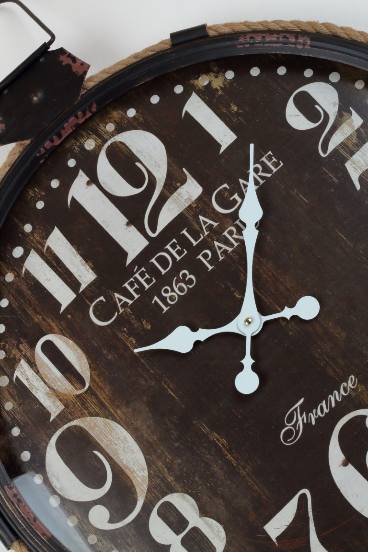 Hodiny lemuje provazové lano a střed ciferníku je doplněn nápisy.
