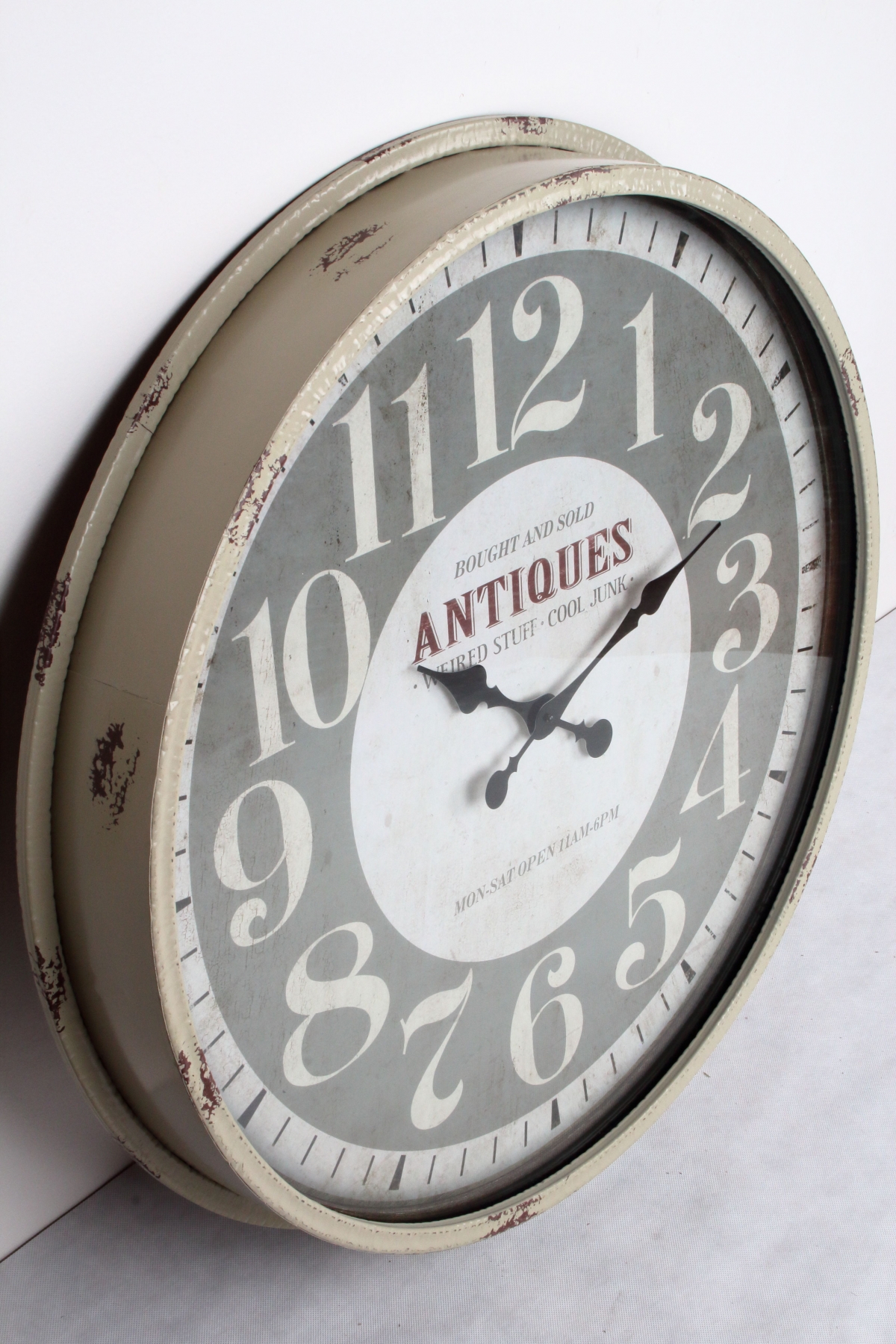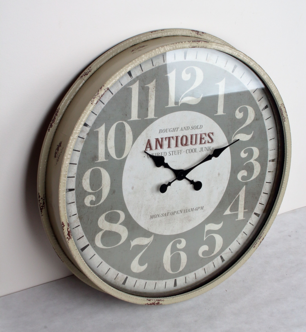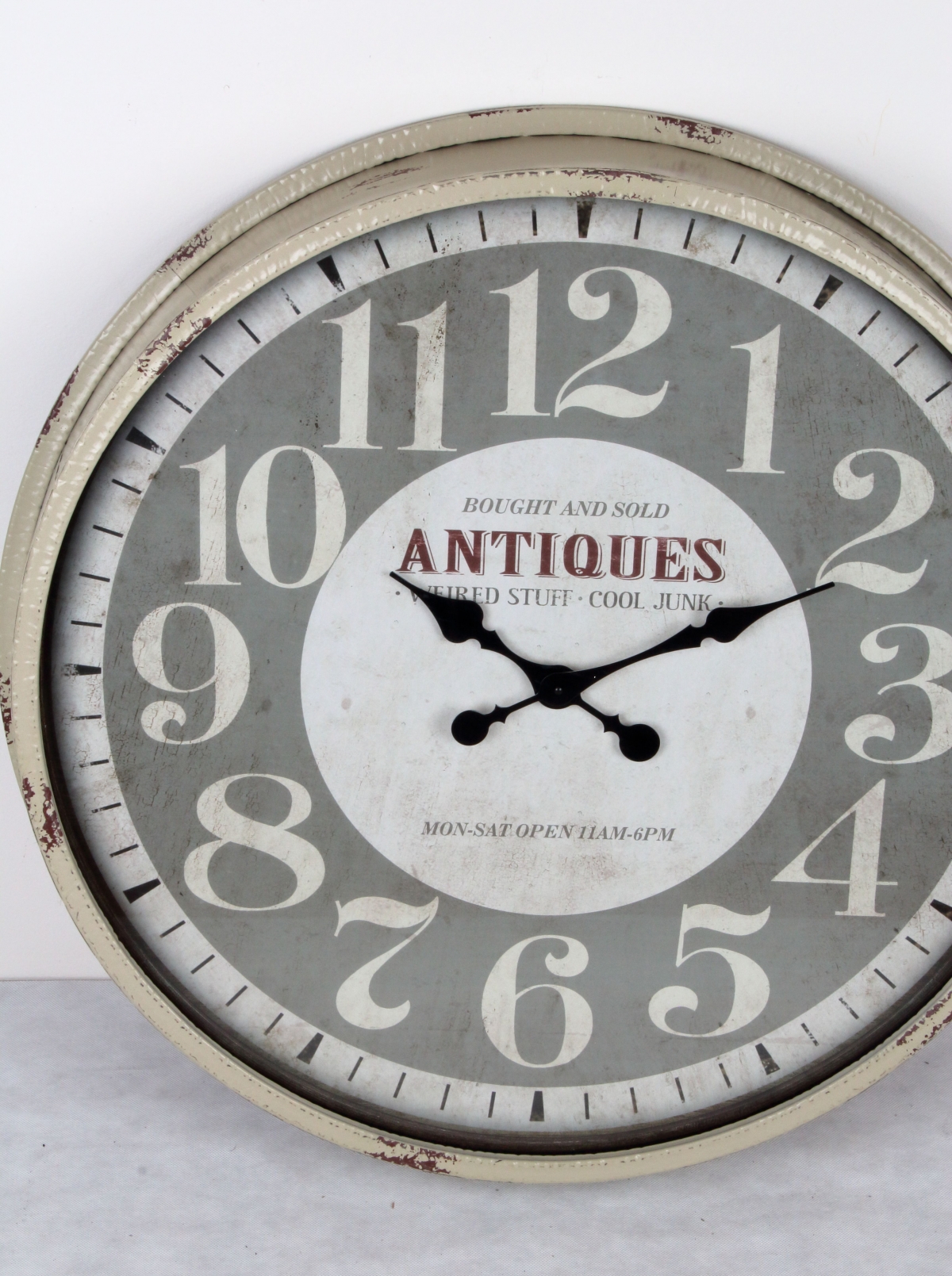 Nástěnné hodiny 80cm s velkými výraznými číslicemi, v oprýskaném vzhledu.
