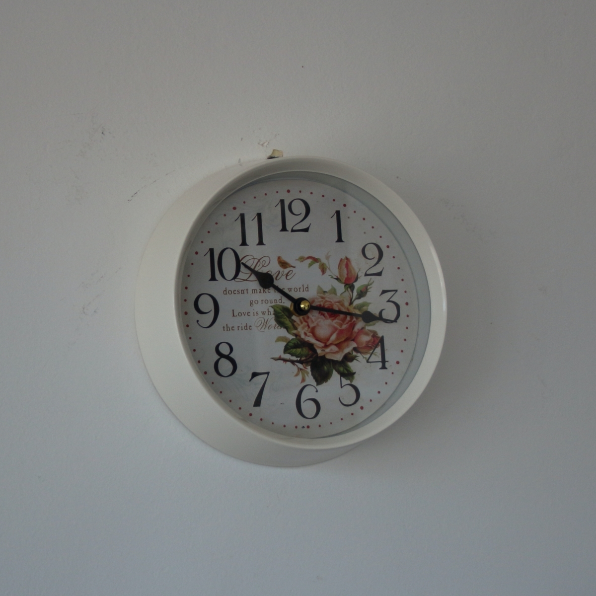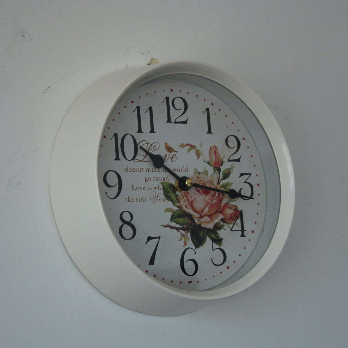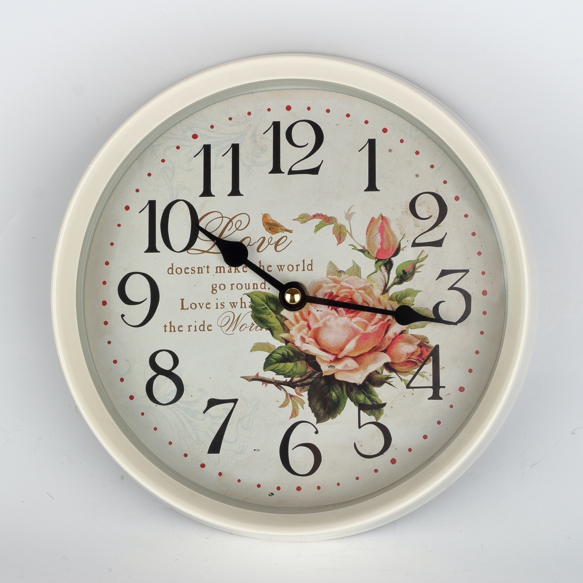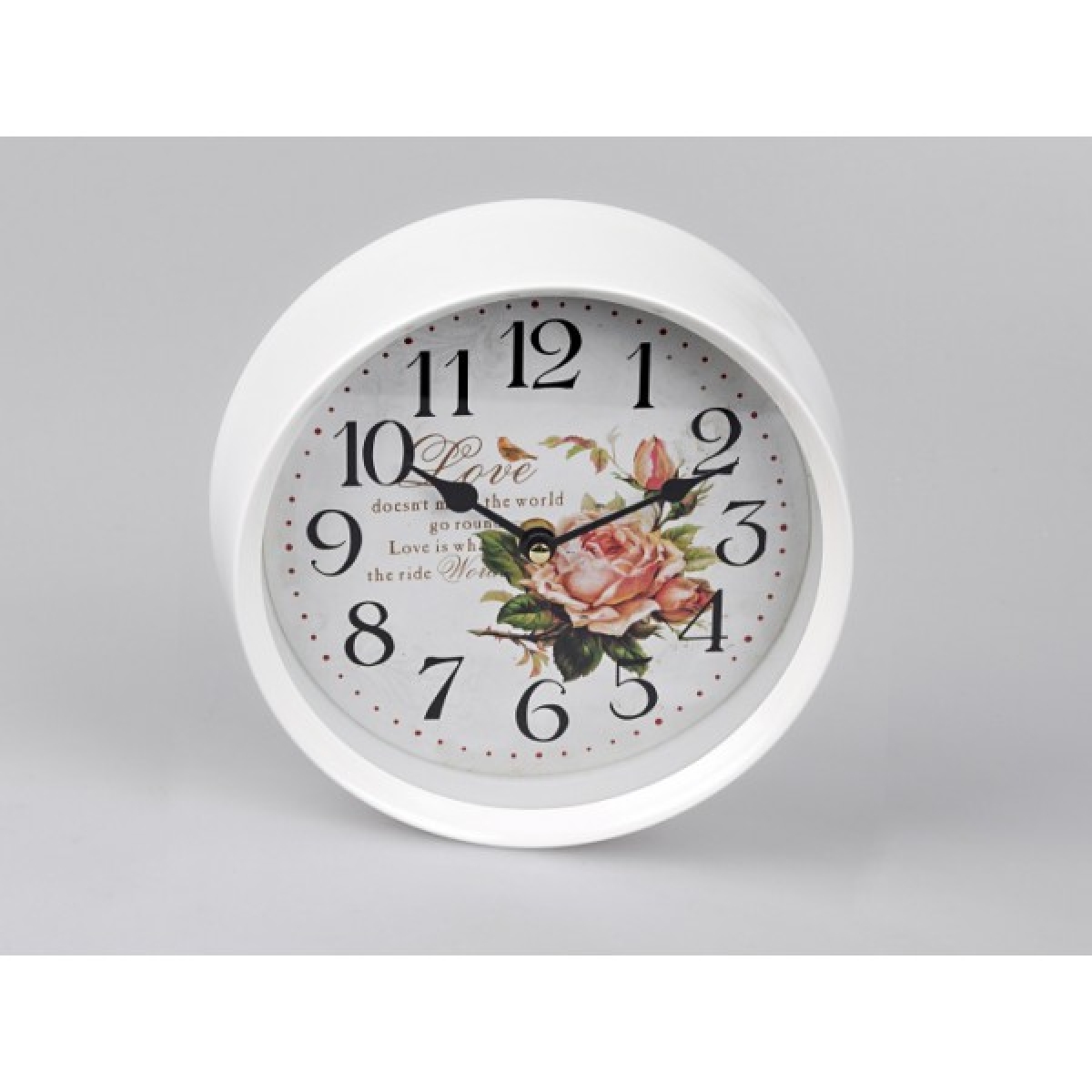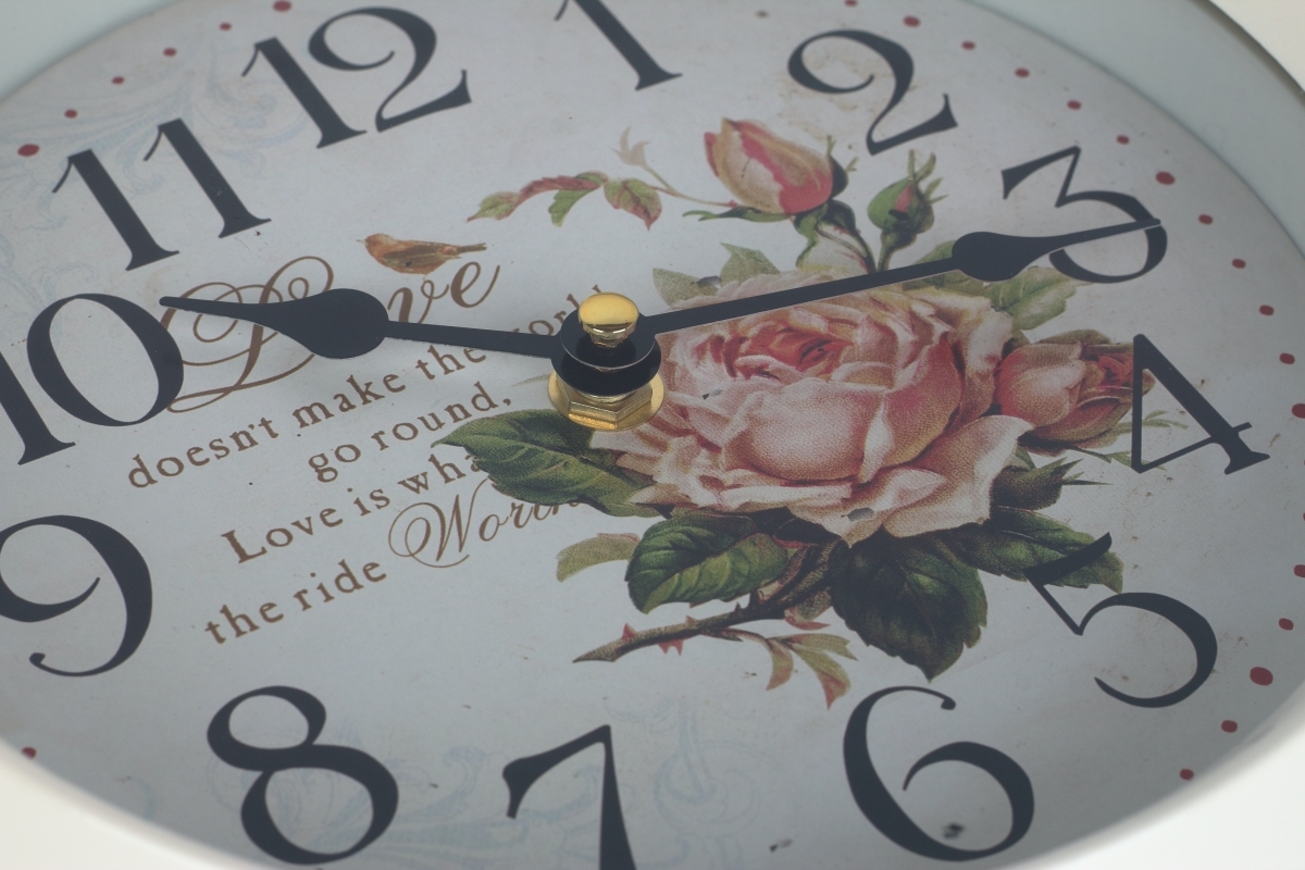 Nástěnné hodiny v bílém kovovém provedení s motivem růže
