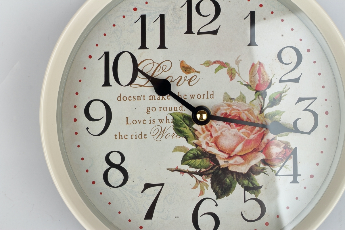 Nástěnné hodiny s motivem růže mají menší průměr, takže snadno zaplní na první pohled nezaplnitelná místa. Slušet jim bude umístění třeba na stěně v kuchyni, nad dveřmi nebo třeba v chodbě.