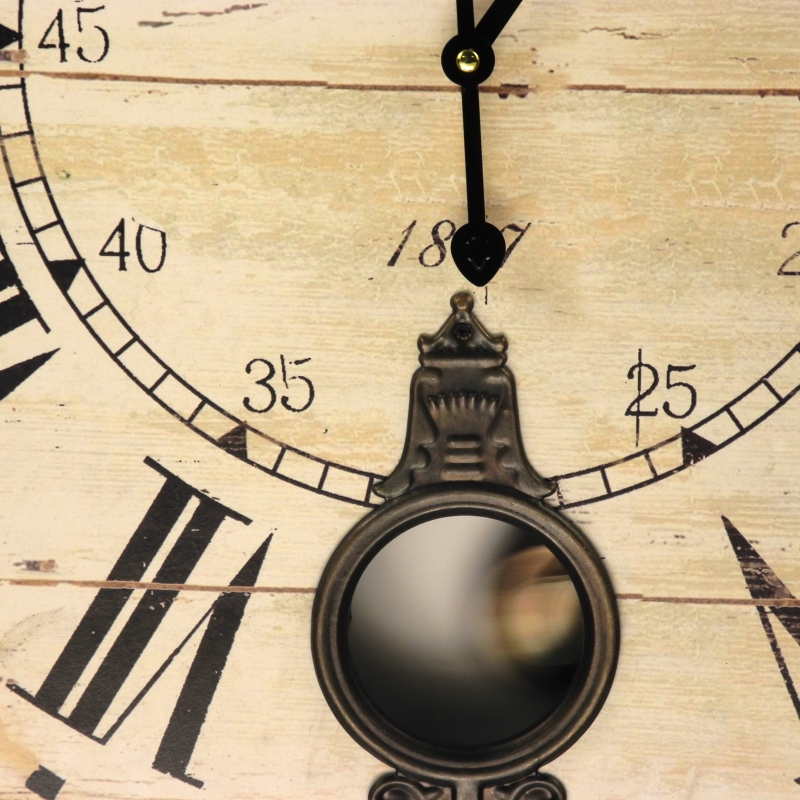 Ve spodní části je pohybující se kyvadlo, které kmitá za ozdobeným otvorem s ornamentem.
