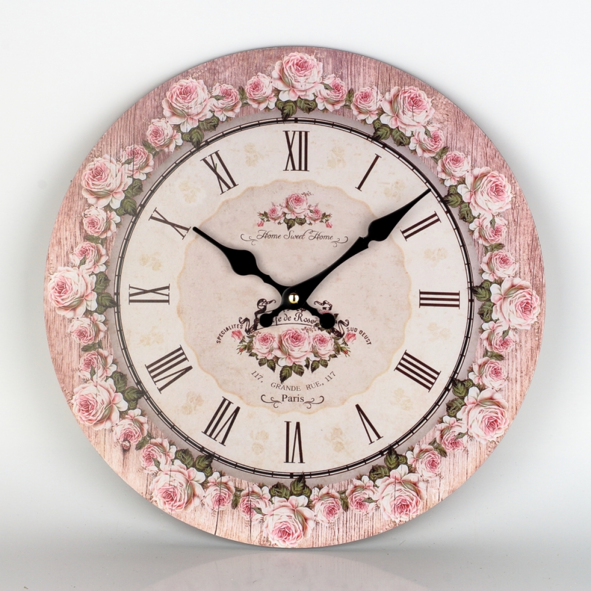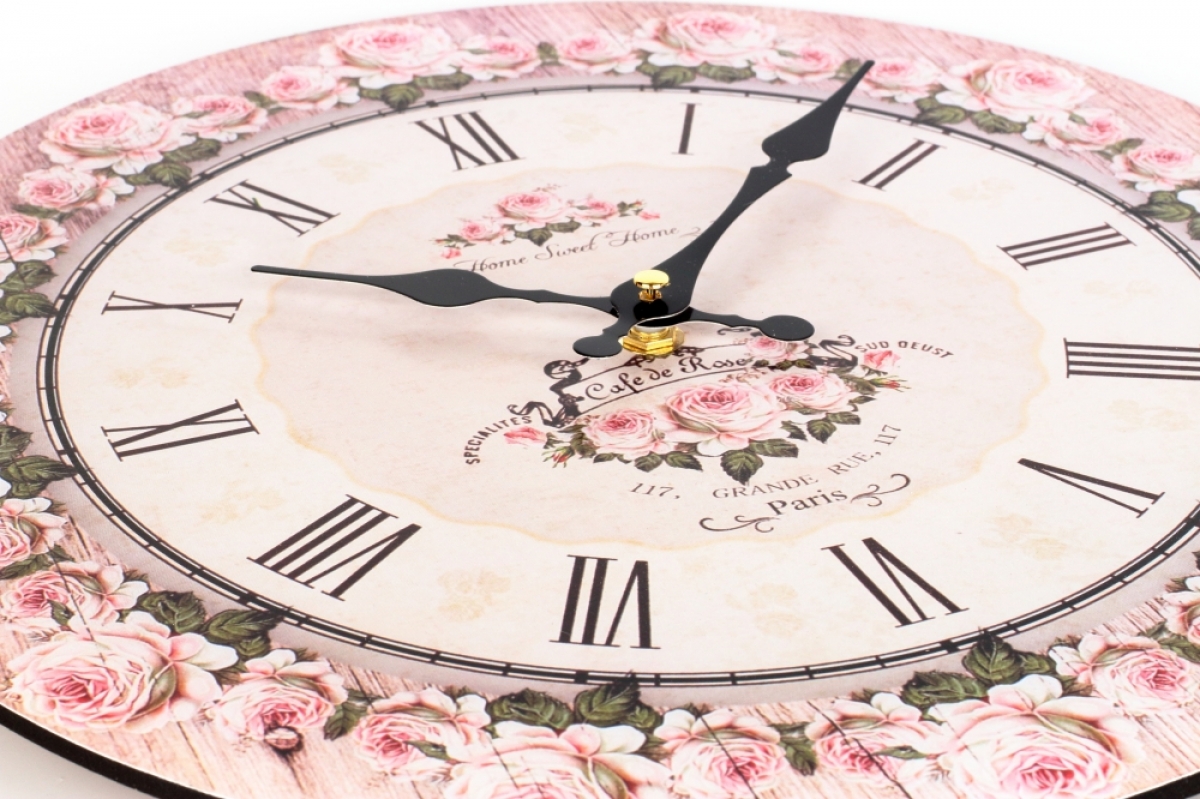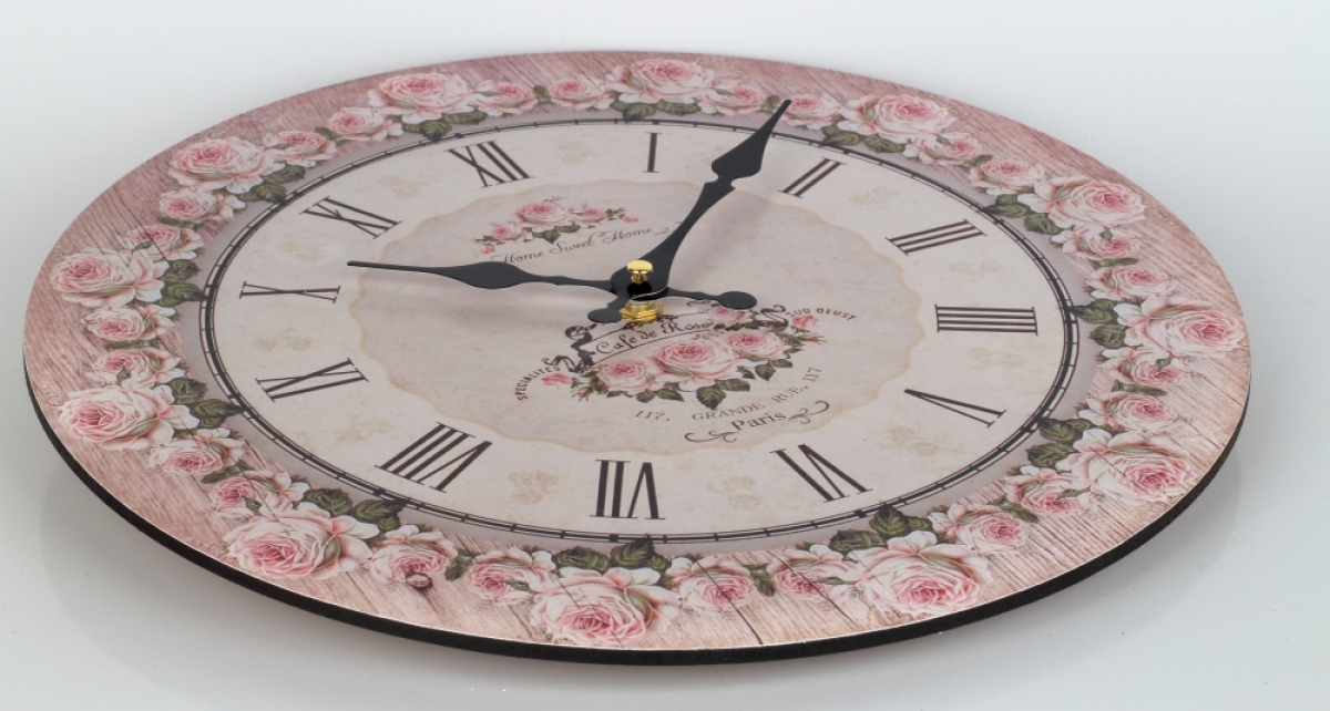Nástěnné hodiny do kuchyně růže 34cm vnesou do kuchyni špetku romantiky. Doplňte židle sedáky v pastelových barvách, stůl pěkným ubrusem a proměna kuchyně je hotová během prá chvil.