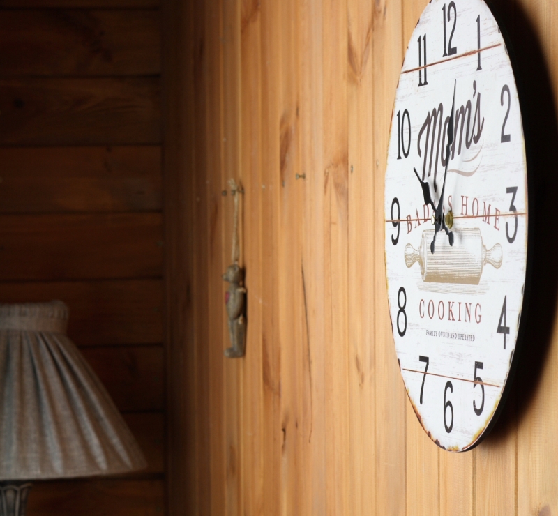 Stylové hodiny s motivem kuchyňského válečku nemohou patřit nikam jinak, než do prostoru kuchyně nebo jídelny.