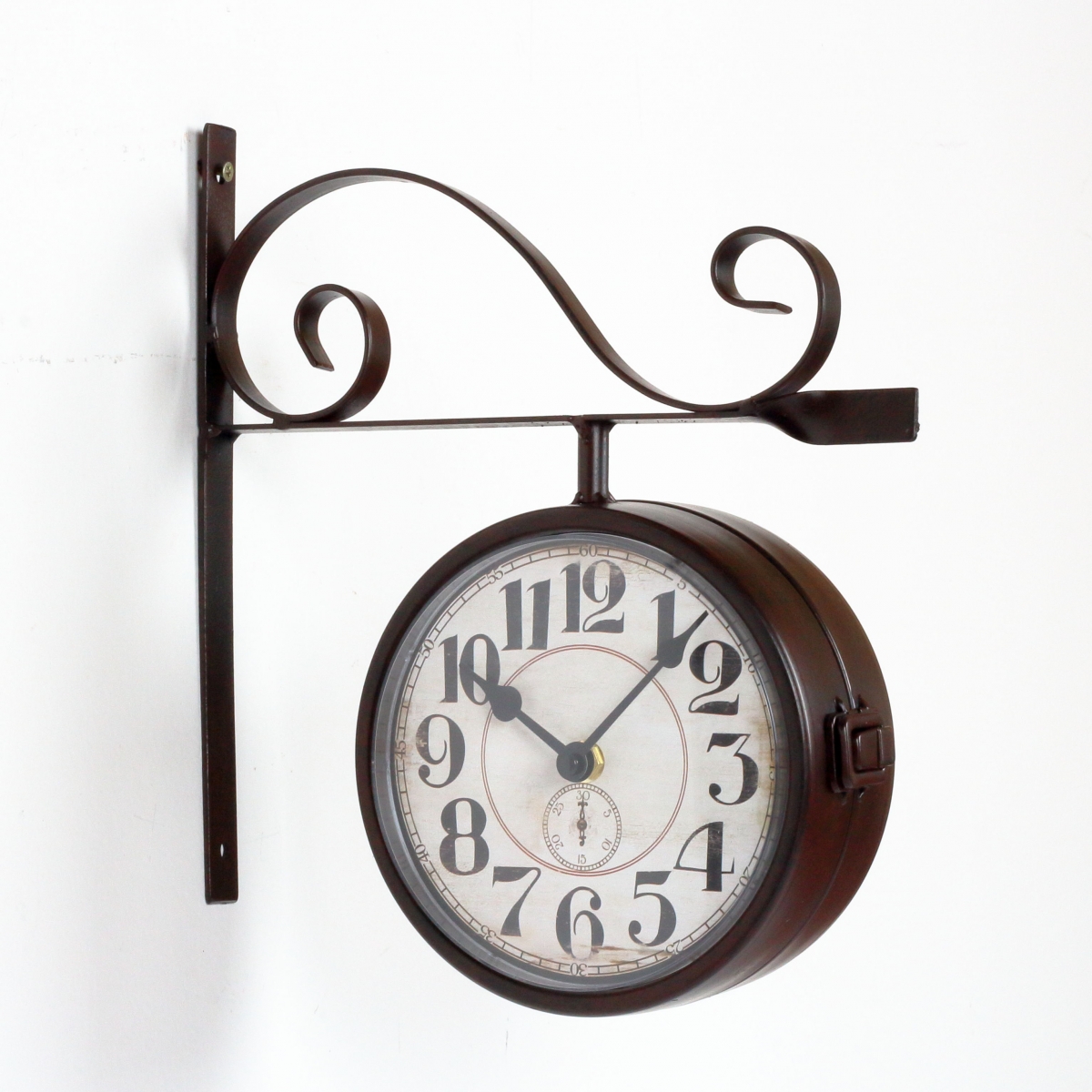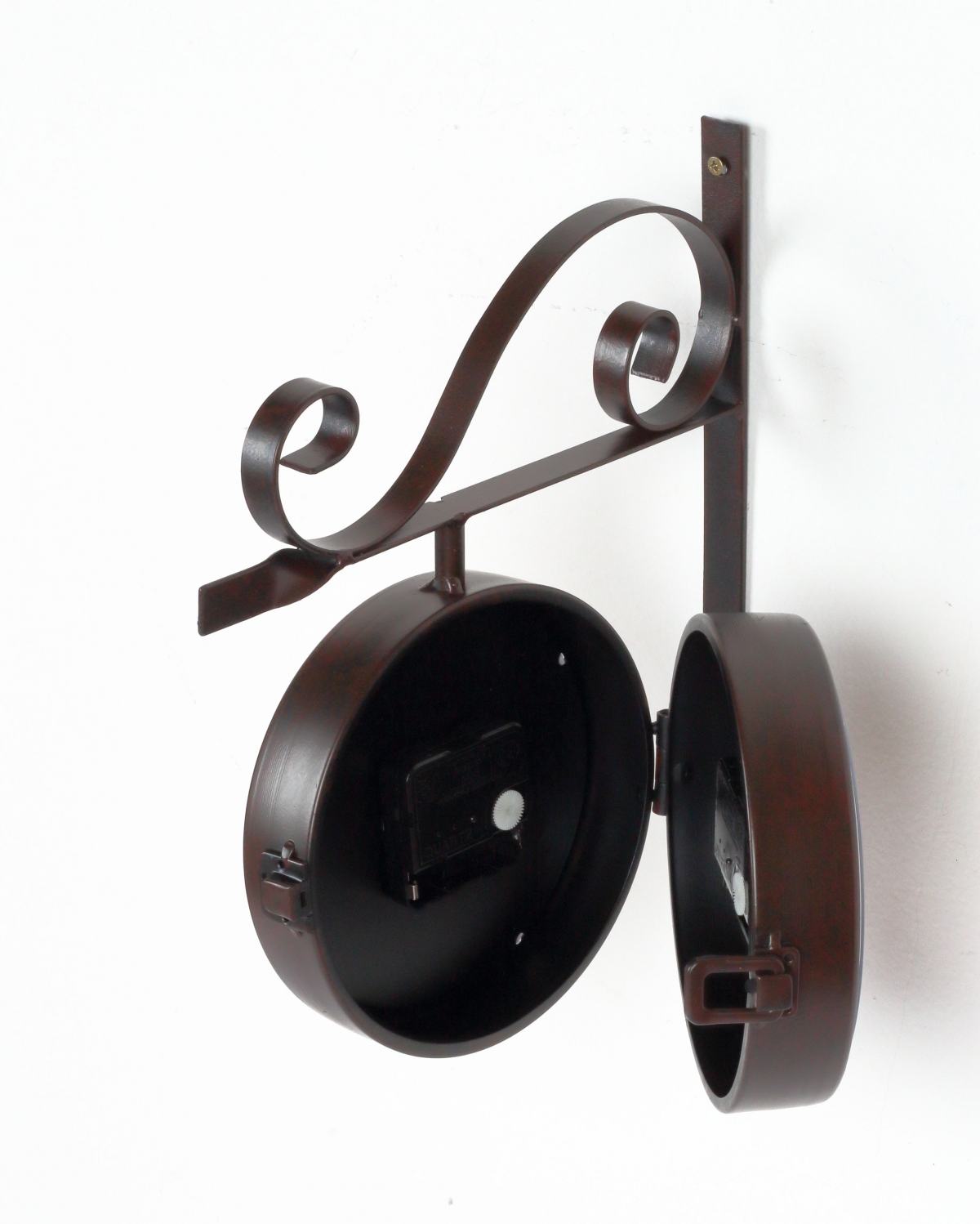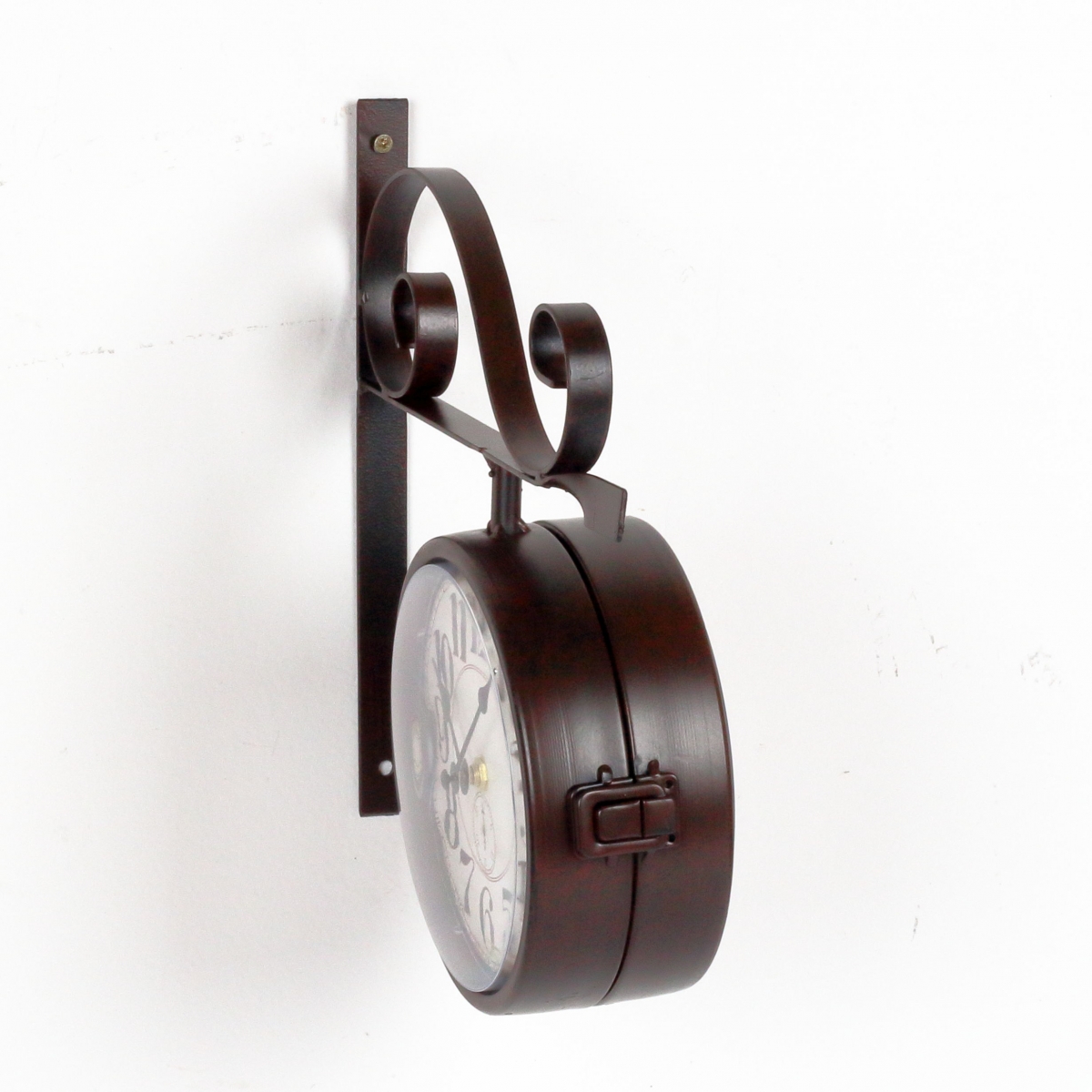 Nástěnné hodiny oboustranné kovové 25,5x30cm, průměr 16cm