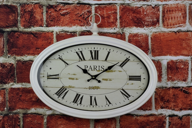 Nástěnné hodiny ovál Paříž 50x33cm v bílé barvě jsou velmi oblíbené. Čisté linie v kombinaci s bílou barvou dodávají hodinám na jejich kráse. Hodí se do kuchyně i obývacího pokoje.