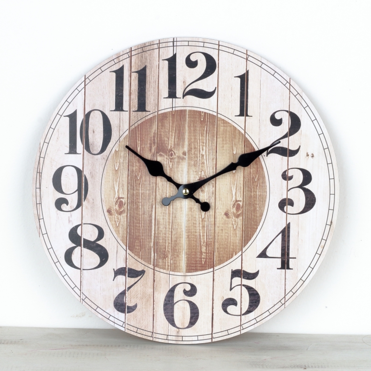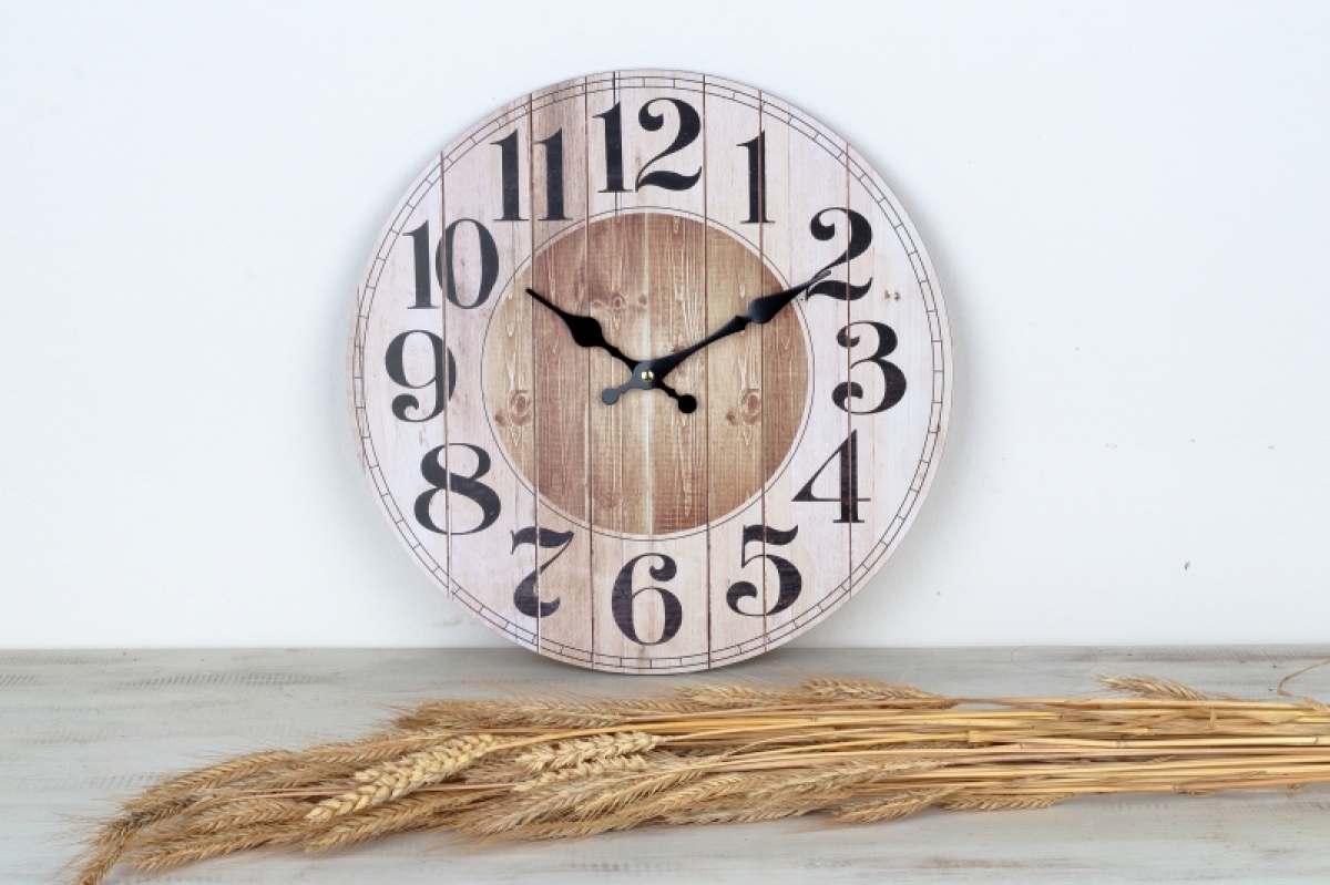 Nástěnné hodiny prkenný vzhled 34cm v jednoduchém stylu s velkými, dobře čitelnými čísly. Nástěnné hodiny patří do každé společenské místnosti, informují o čase a jsou téměř nepostradatelnou součástí interiéru.