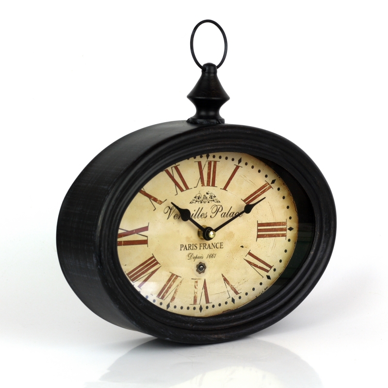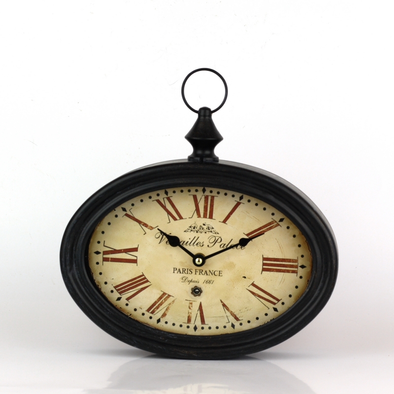 Nástěnné hodiny s černými čísly 28x27cm mají zajímavě řešenou horní část hodin. Hodiny jsou oválné a na horní straně rámu je dekorativní úchyt, který dodává hodinám ten správný šmrnc.