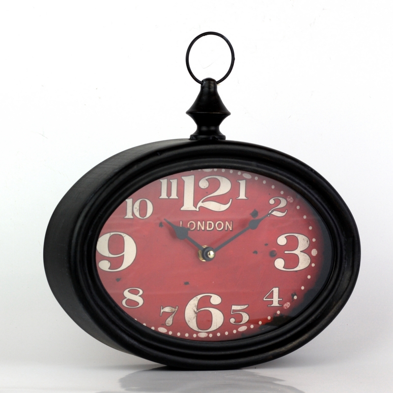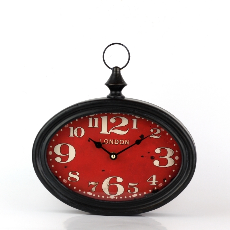 Nástěnné hodiny s červeným ciferníkem 28x27cm mají zajímavě řešenou horní část hodin. Hodiny jsou oválné a na horní straně rámu je dekorativní úchyt, který dodává hodinám ten správný šmrnc.