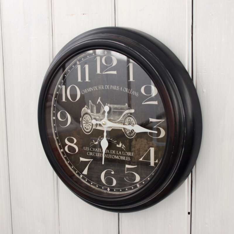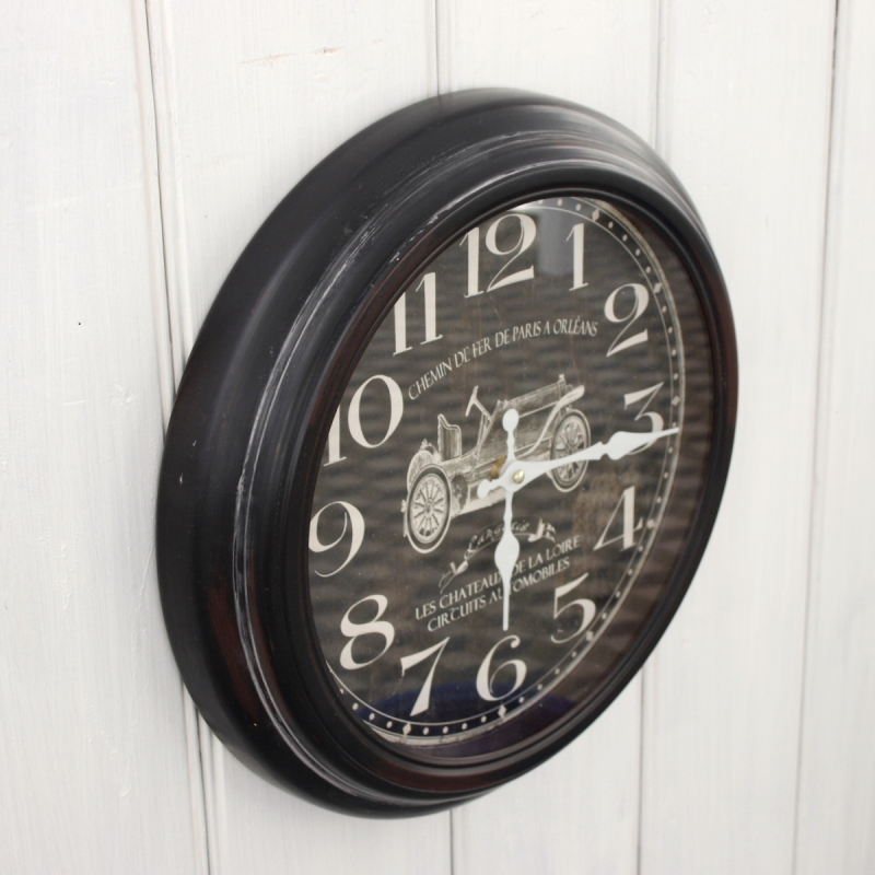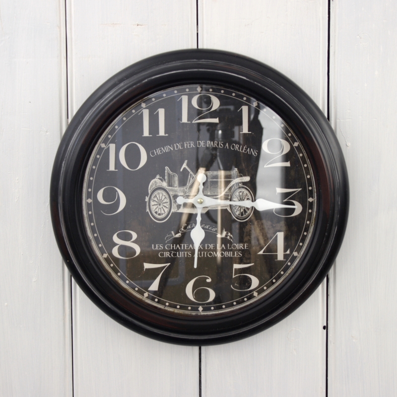 Nástěnné kovové hodiny Automobiles 37cm s krásným motivem retro modelu na ciferníku. Hodiny v čistě pánském stylu potěší každého muže. Budou ozdobou pracovny, kanceláře, ale i stylové restaurace či baru.